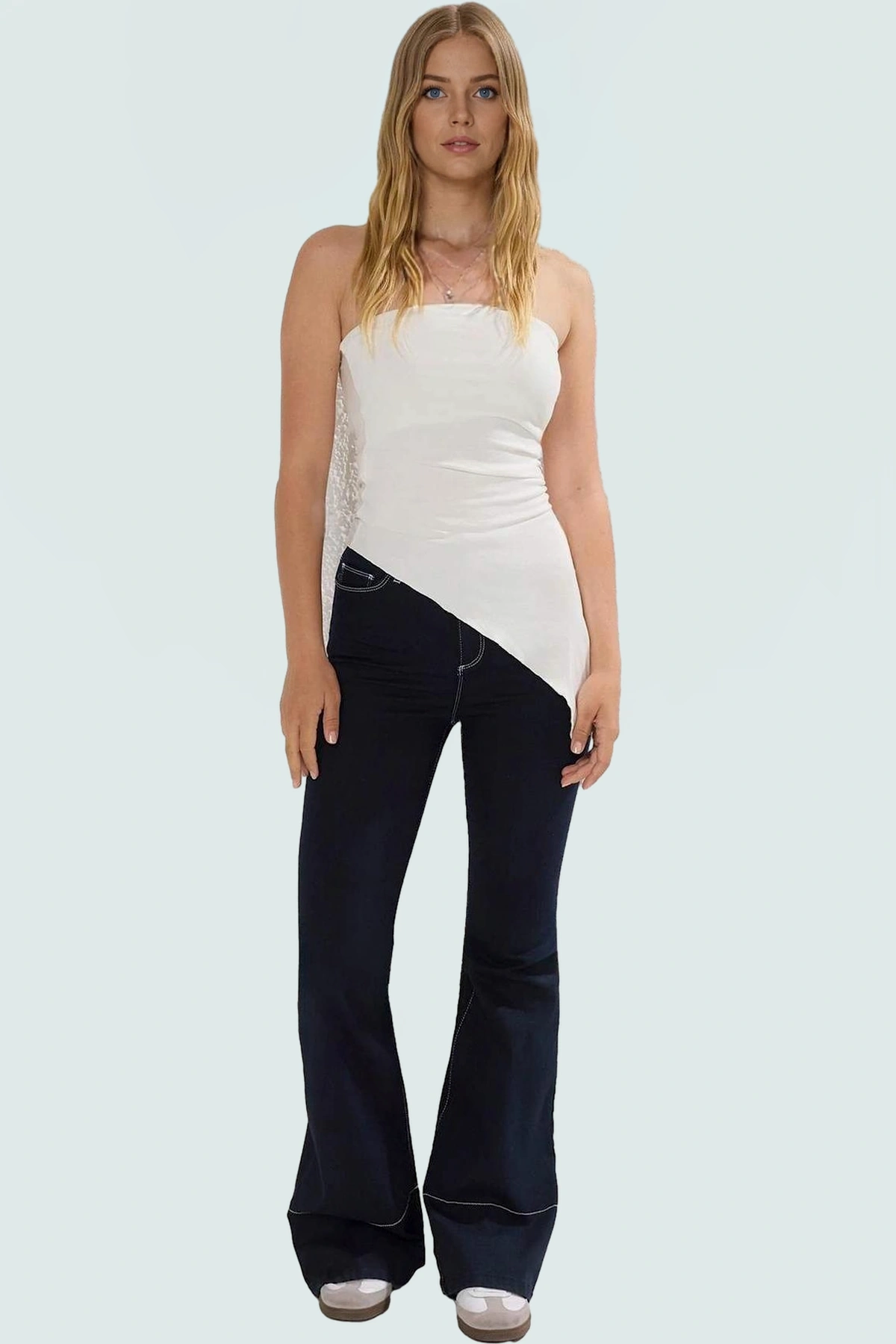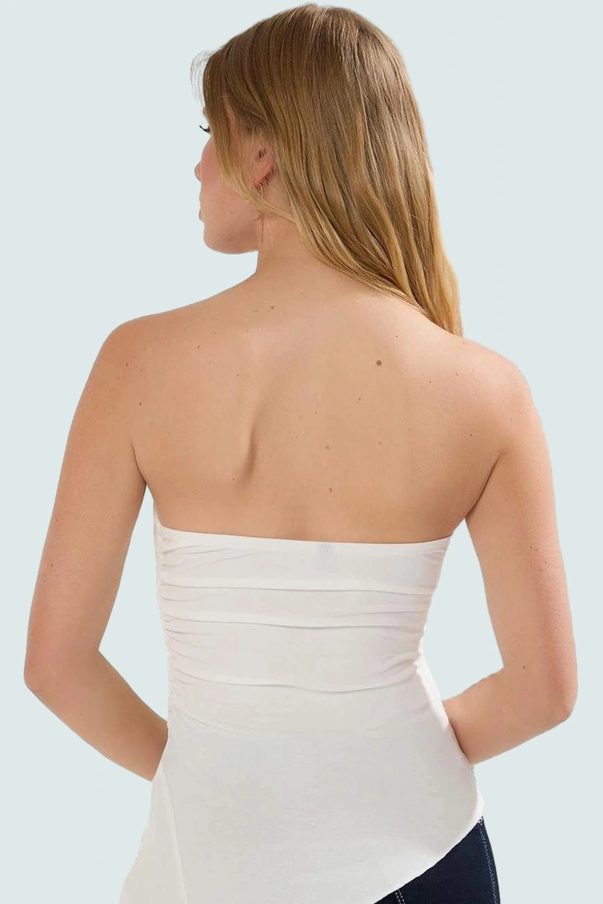 Günlük şıklığınıza modern bir dokunuş katacak, bu muhteşem ekru bluz ile tanışın! Straplez ve asimetrik tasarımıyla dikkatleri üzerinize çekecek bu bluz, %97 viskoz ve %3 elastan karışımı, yüksek kaliteli viskon ribana kumaştan üretilmiştir. Bu sayede hem yumuşak bir dokuya hem de mükemmel bir uyuma sahiptir. Nefes alabilir yapısıyla yaz aylarında bile rahatlık sunar, gün boyu konforlu bir deneyim yaşamanızı sağlar. Asimetrik kesimi, vücudunuzu şık bir şekilde sararak zarif bir siluet oluşturmanıza yardımcı olur. Hem günlük hem de özel günleriniz için ideal olan bu bluz, farklı stillerle kolayca kombinlenebilir.