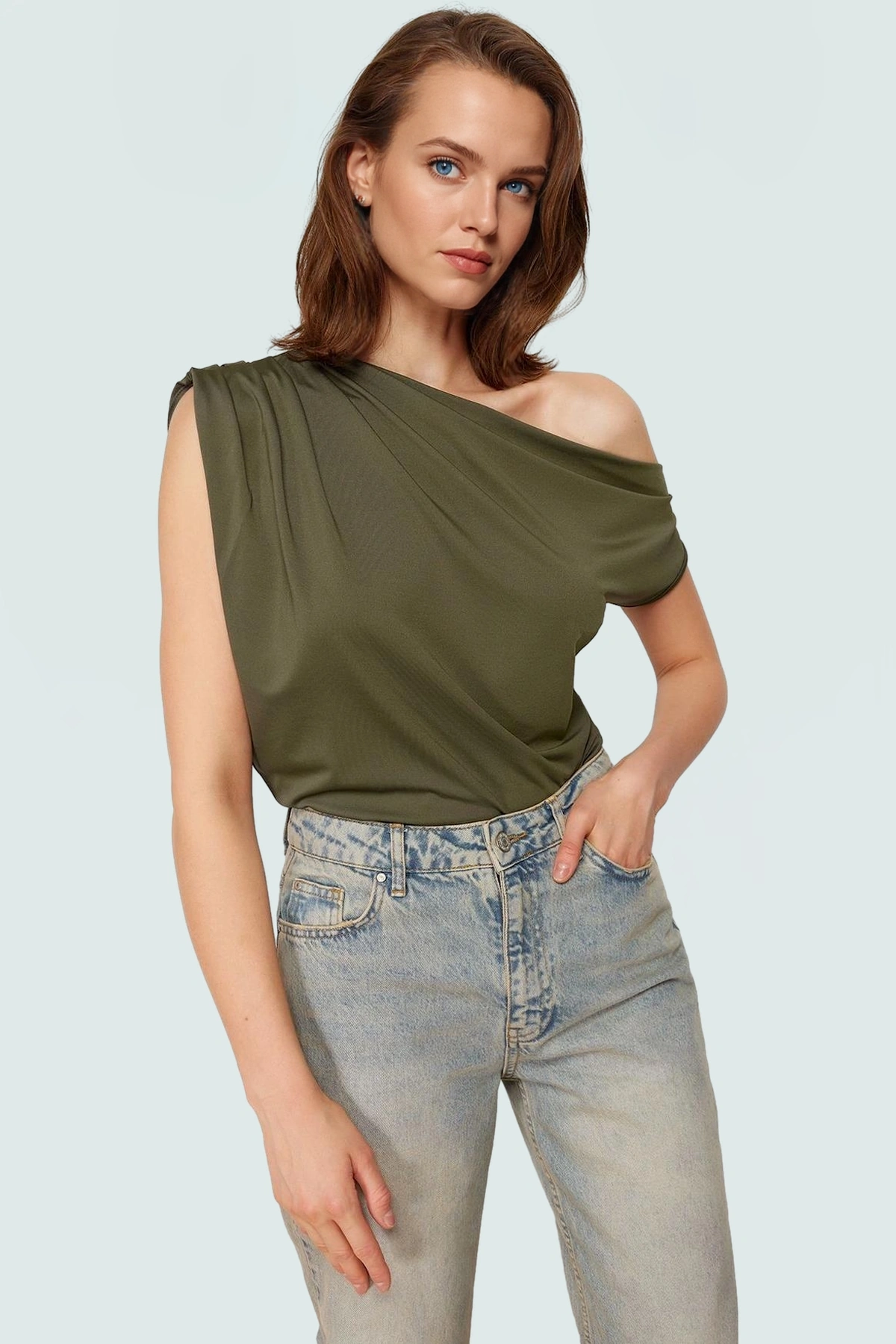 93% polyester ve 7% elastan karışımı kumaştan üretilen bu bluz, nefes alabilir yapısıyla yaz aylarında serin kalmanıza yardımcı olur. Asimetrik yakası ve regular kesimiyle hem modern hem de zamansız bir stile sahiptir. Kısa kolları ve büzgü detayıyla rahat ve şık bir görünüm elde edebilirsiniz. Cepsiz tasarımıyla minimalist bir stil tercih edenler için mükemmel bir seçenektir. Düz ve baskısız tasarımı sayesinde farklı renk ve desenlerdeki alt parçalarla kolayca kombinlenebilir.