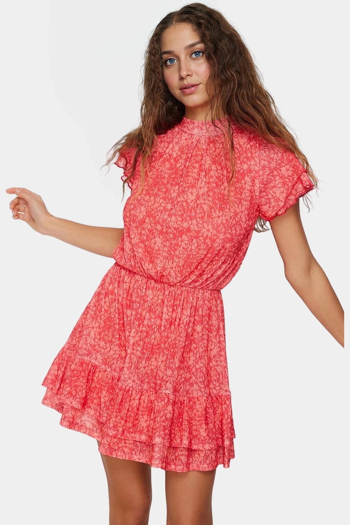 Yüksek kaliteli polyester kumaş, dayanıklılığı ve kolay bakımı ile öne çıkıyor. Astarlı yapısıyla iç gösterme endişesi olmadan rahatça kullanabilirsiniz. 90 cm ön boyu ile mini boyu ve rahat kalıbıyla hareket özgürlüğü sağlarken, aynı zamanda şık ve modern bir görünüm sunar. Çiçekli deseni ve kırmızı rengi ile tarzınızı tamamlayacak bu elbise, çeşitli aksesuarlarla kombinleyerek farklı stillere uyarlayabilirsiniz.