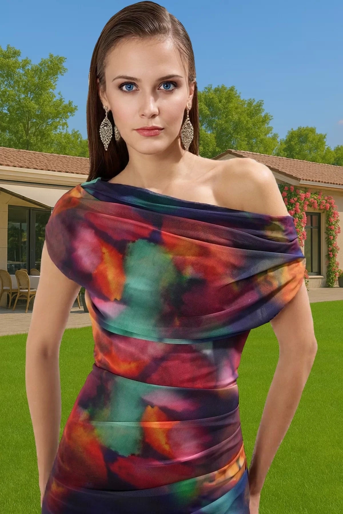 Bu göz alıcı astarlı örme tül elbise, özel günleriniz için mükemmel bir seçim. Çok renkli ve soyut desenleriyle dikkatleri üzerinize çekecek, benzersiz bir tarza sahip. Hafif ve rahat yapısıyla gün boyu konforlu hissetmenizi sağlayacak.