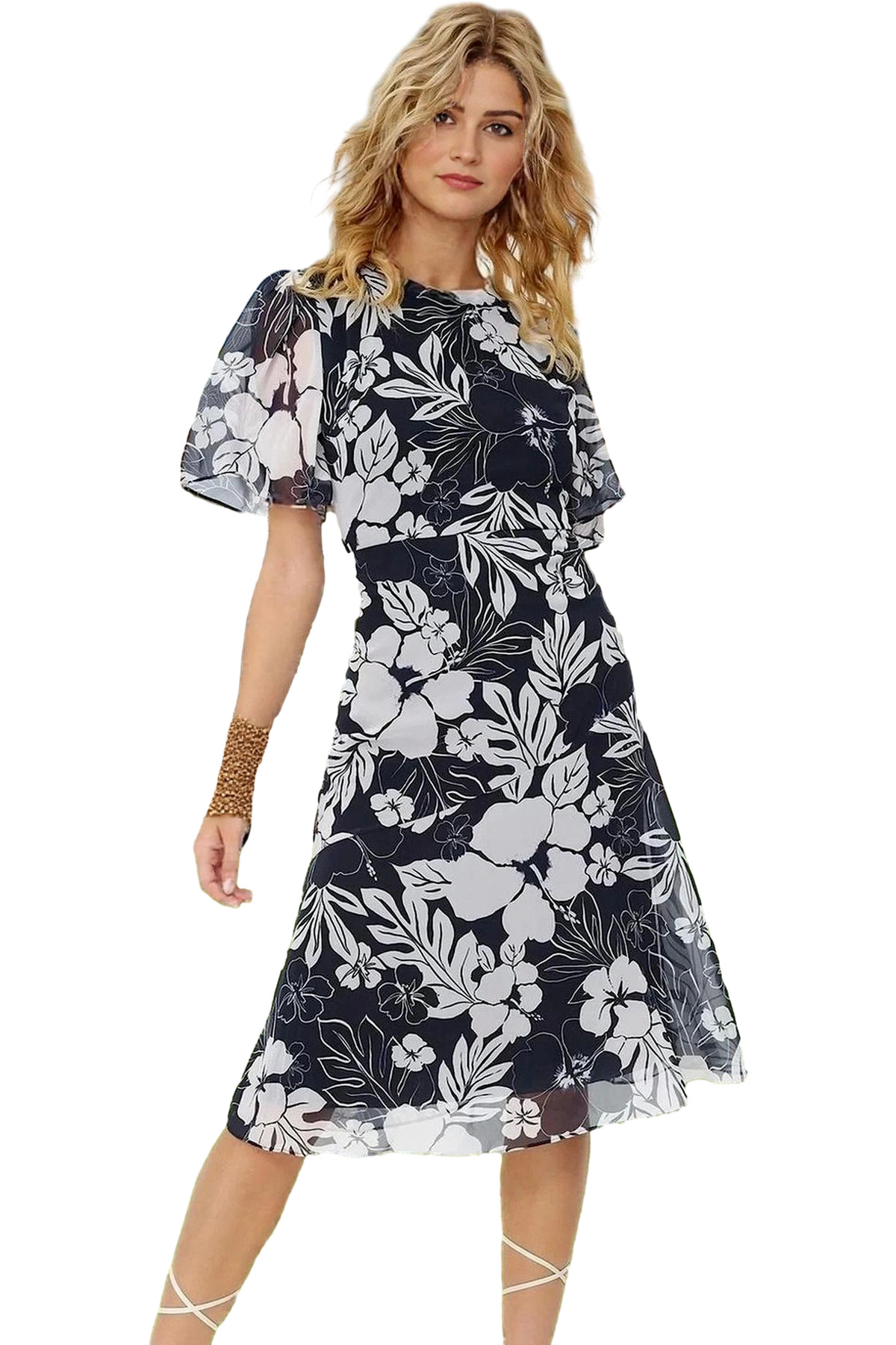 Astarlı Şifon Elbise A Kesim Midi Boy Polyester Yazlık Premium Kalite Özenle Seçilmiş Premium Kalite
