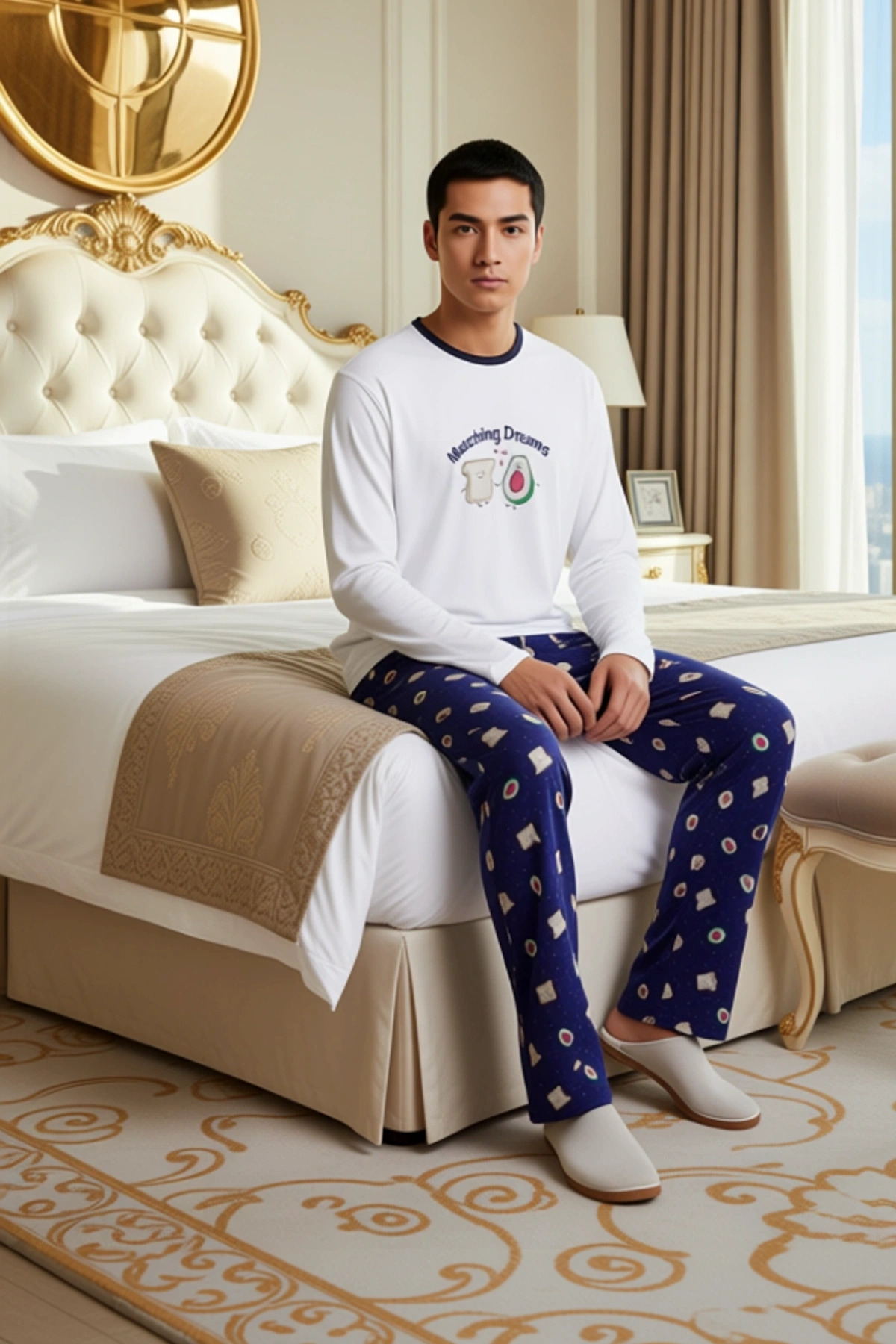 Kadınlar için özel olarak tasarlanmış bu pijama takımı, %100 pamuk ipliği ile üretilmiştir. Ekru rengi üst ve indigo rengi altı bir araya getiren bu takım, üzerinde yer alan sevimli avokado ve tost baskılarıyla dikkat çekiyor. “Matching Dreams” yazısı, baskılara eğlenceli bir dokunuş katıyor. Regular fit kalıbı sayesinde rahat bir kullanım sunan takım, ev giyiminde konforu ön planda tutanlar için idealdir. 30/2 openend süprem kumaş dokuması, yumuşak ve nefes alabilen bir yapı sağlayarak gün boyu rahatlık sunar. Bu pijama takımı, alt-üst olarak iki parçadan oluşur ve sweatshirt-pantolon kombinasyonuyla hem şık hem de fonksiyonel bir seçenektir. Pantolonun boru paça kesimi, takıma modern bir görünüm kazandırır. Bu ürün, cool ve comfort persona’ya hitap eder. Üst kısımda bisiklet yaka ve uzun kollu bir tasarım bulunan bu pijama takımı, standart kol kesimiyle hareket özgürlüğü sunar. %100 pamuk materyali, cildinize dost ve yumuşak bir dokunuş sağlar. Regular fit kesimi, vücuda tam oturarak rahat bir uyum yakalar. Avokado ve tost baskısı, takıma neşeli ve eğlenceli bir hava katarak ev giyiminize farklılık getirir. Bu pijama takımı, özellikle evde dinlenirken veya rahat bir gün geçirirken tercih edilebilir. Yumuşaklığı ve nefes alabilirliği sayesinde uyku kalitenizi artırırken, şık tasarımıyla da kendinizi iyi hissetmenizi sağlar. Bu ürün, homewear konseptine uygun olarak tasarlanmıştır. Kış mevsiminde sıcak ve konforlu bir seçenek sunan bu pijama takımı, evde geçirdiğiniz zamanları daha keyifli hale getirir. Bu takımı, rahat bir jean pantolon veya şık bir tayt ile kombinleyerek günlük şıklığınızı tamamlayabilirsiniz. Ayakkabı olarak ise spor ayakkabılar veya rahat ev terlikleri tercih edilebilir. Takımın bakımı kolaydır; makinede yıkanabilir ve düşük ısıda ütülenebilir. %100 pamuk içeriği sayesinde uzun ömürlüdür ve kalitesini uzun süre korur. Bu pijama takımı, hem kendiniz için harika bir hediye seçeneği olabilir hem de sevdiklerinize düşünceli bir sürpriz yapmanızı sağlayabilir.