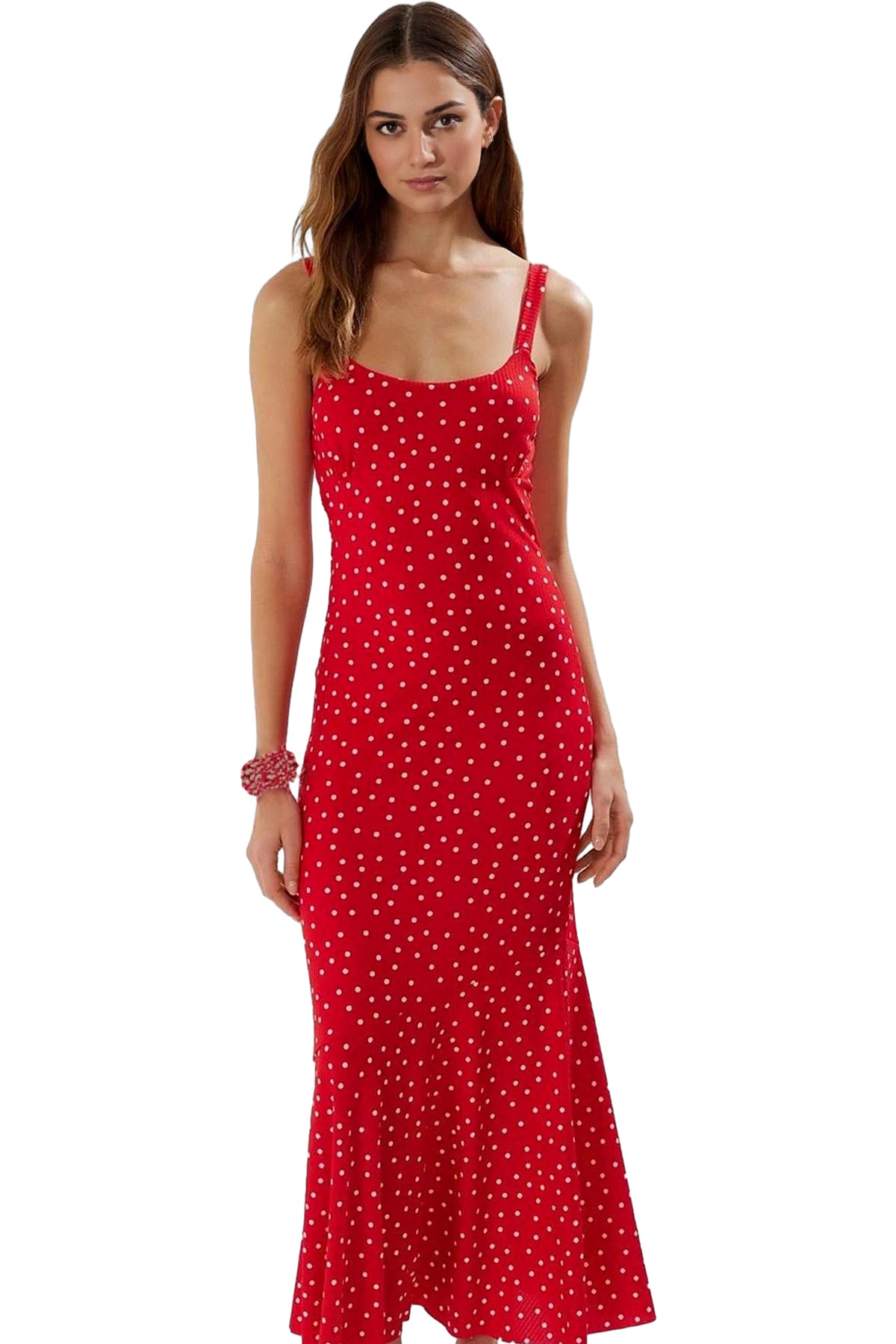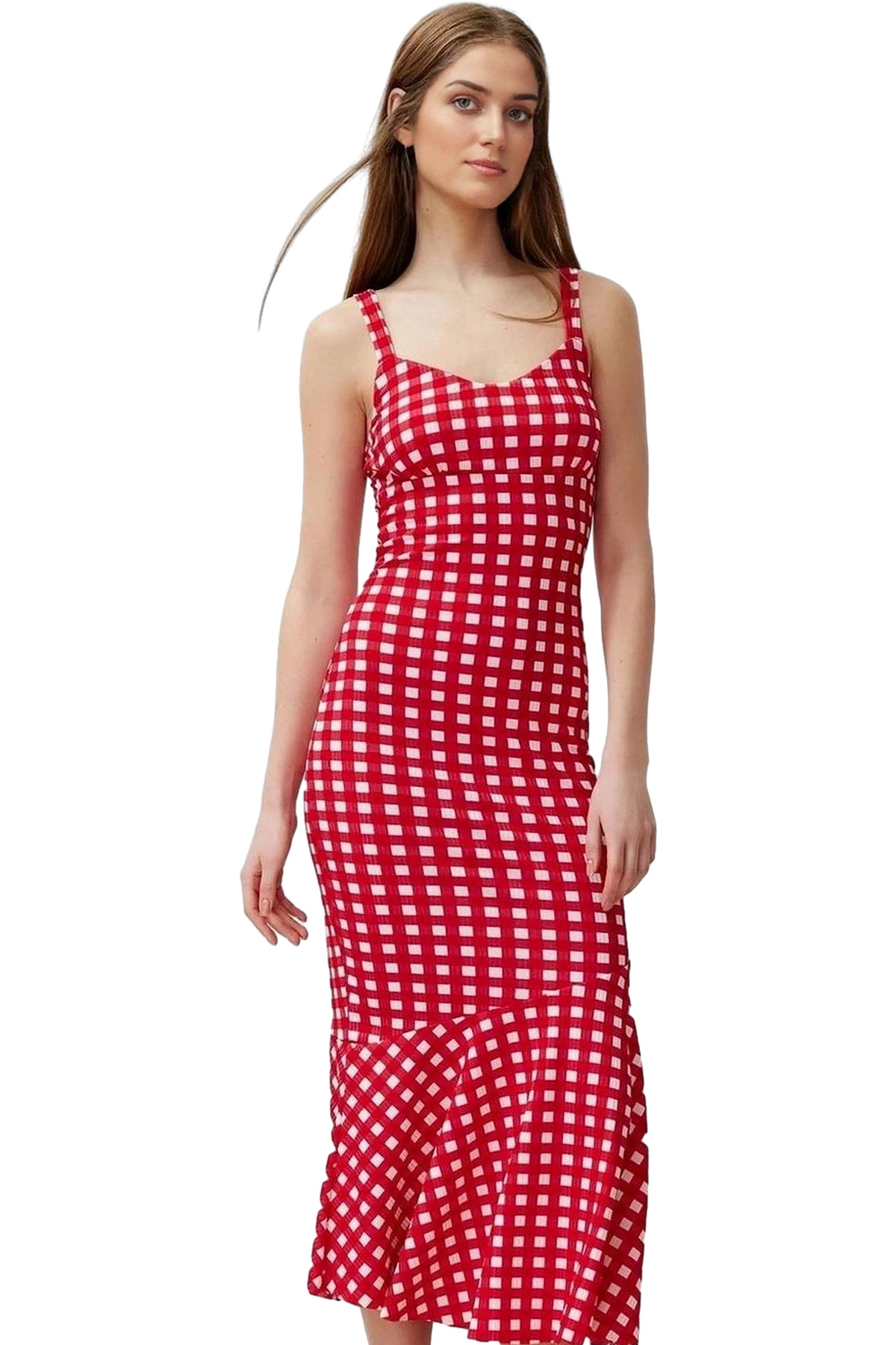Vücut hatlarınızı zarifçe saran bu bodycon maxi elbise ile göz kamaştırıcı bir görünüm yakalayın. 94% polyester ve 6% elastan karışımından üretilen nefes alan kumaşı, gün boyu konfor sağlar. Çiçek desenli tasarımıyla yaz aylarının enerjisini yansıtırken, kolsuz ve V yaka detayıyla da feminen bir şıklık sunar. Hem günlük hayatta hem de özel davetlerde rahatlıkla tercih edebileceğiniz bu çok yönlü elbise, gardrobunuzun yeni gözdesi olacak.