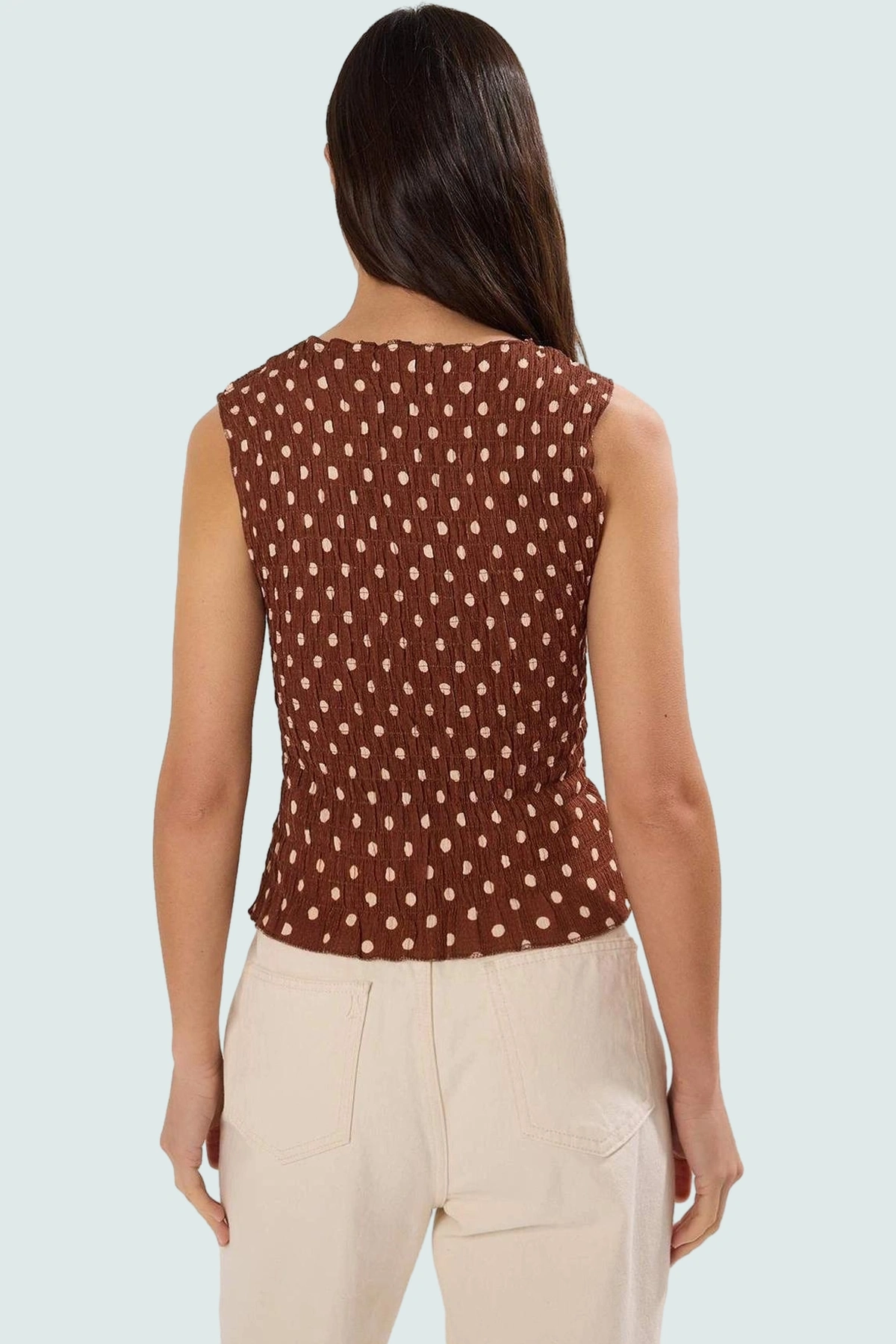 Bu sezonun trendlerinden biri olan bürümcük örme bluz ile tarzınıza modern bir dokunuş katın. Bisiklet yakası ve kolsuz tasarımıyla sıcak yaz günlerinde hem şık hem de rahat hissetmenizi sağlar. Çok renkli ekose deseni, her türlü kombininize uyum sağlayacak dinamik bir görünüm yaratır. Vücuda oturan, fitted kalıbı ile kusursuz bir siluet oluştururken, esnek yapısı sayesinde gün boyu rahat hareket etmenize olanak tanır. %99 polyester ve %1 elastan içeren kumaş yapısı, dayanıklı ve kolay temizlenebilir özelliğiyle ön plana çıkar.
