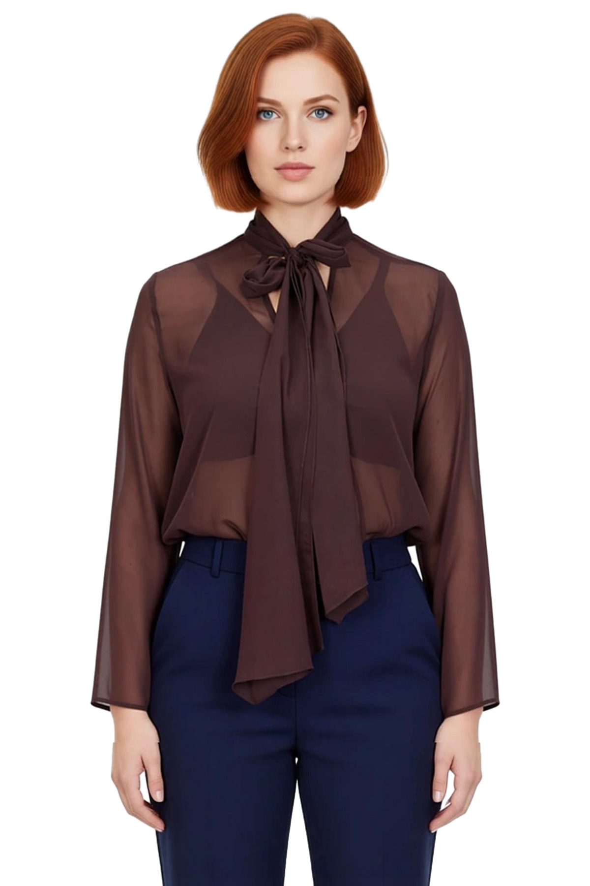 Bu bluz, büyük beden giyen kadınların zarafetini ve stilini ön plana çıkarmak için özel olarak tasarlanmıştır. Ürün, şık bir V yaka kesimine ve boyundan bağlanan dikkat çekici bir detaya sahiptir. Bu bağcık detayı, bluzun estetiğini zenginleştirirken, kullanıcının kendi tarzına göre ayarlamasına olanak tanır. Hafif ve dökümlü şifon kumaşı, gün boyu konforlu bir kullanım sunar ve zarif bir görünüm sağlar. Dokuma kumaş yapısı, ürünün kalitesini ve dayanıklılığını garanti eder. Bu bluz, hem günlük kullanımda hem de özel günlerde şıklığından ödün vermek istemeyen kadınlar için ideal bir tercihtir. Üzerindeki çiçekli desen, bluzun estetik çekiciliğini artırır ve her türlü ortamla uyum sağlayabilen bir hava katar. Regular kalıbı, vücuda nazikçe oturarak rahat bir hareket özgürlüğü sunarken, uzun kollu tasarımı özellikle kış aylarında sıcaklık ve şıklığı bir arada sunar. Bu bluz, casual kombinlerle modern bir görünüm yakalamak veya daha resmi kıyafetlerle zarif bir dokunuş eklemek için mükemmel bir seçenektir. Materyal bileşeni %100 polyesterdir, bu da ürünün kolay bakımını ve uzun ömürlü kullanımını sağlar. Yıkama talimatı Hassas Yıkama olarak belirtilmiştir, bu da ürünün hassas bir yıkama gerektirdiğini gösterir. Kış sezonu için uygun olan bu bluz, konforu ve şıklığı bir arada arayan kadınlar için özenle üretilmiştir. Ürün, Türkiye’de üretilmiş olup, moda trendlerini takip eden ve kendine özgü stilini yansıtmak isteyen kadınlar için tasarlanmıştır. Bu bluz, jean pantolonlarla rahat bir günlük şıklık veya eteklerle daha feminen bir görünüm oluşturmak için idealdir. Ürünün transparan dokusu, doğru iç giyim seçimiyle stilinize fark katmanıza yardımcı olabilir. Bu bluz, her kadının kendi stilini özgürce ifade etmesine olanak tanıyan, zamansız bir moda parçasıdır. Ürün, hem rahatlığı hem de estetik görünümü bir arada arayan kadınlar için özenle hazırlanmıştır.