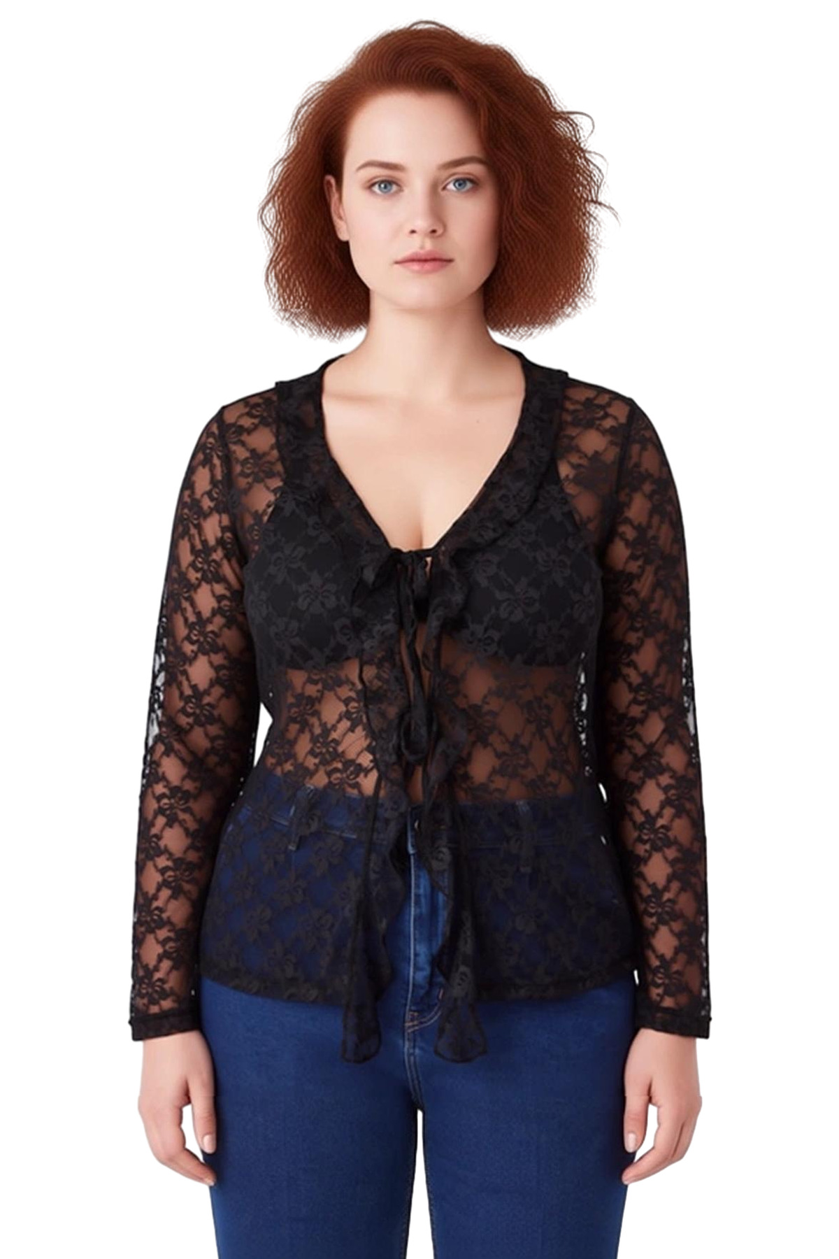 Bu özel tasarım bluz, büyük beden kadınlar için hem rahatlığı hem de şıklığı bir araya getiren bir seçenektir. V yaka kesimi, zarif bir dekolte sunarken, uzun kollu tasarımı her türlü hava koşulunda kullanım imkanı tanır. Ürünün ana malzemesi %100 polyester olup, hafifliği ve yumuşak dokusu ile gün boyu konfor sağlar. Örme kumaş yapısı, esnekliği sayesinde vücuda uyum sağlar ve hareket özgürlüğü sunar. Üzerindeki zarif çiçekli desen, bluzun estetik çekiciliğini artırarak ona feminen bir dokunuş katar. Özellikle kullanılan dantel dokuma, ürüne sofistike ve göz alıcı bir hava katarak onu özel günler veya şık davetler için ideal bir seçim haline getirir. Regular kalıbı, vücut hatlarını nazikçe sararak rahat bir kullanım sunar. Basic silueti, farklı kıyafetlerle kolayca uyum sağlamasına olanak tanır. Bu bluz, casual ve günlük kullanım için mükemmel bir tercihtir. Yaz koleksiyonu için tasarlanmış olsa da, uzun kollu yapısı ve şık dokusu sayesinde diğer mevsimlerde de stil sahibi bir görünüm elde etmek için kullanılabilir. Ürün, Hassas Yıkama yıkama talimatına uygun olarak kolayca bakımı yapılabilir. Bu bluz, büyük beden kadınların gardıroplarında bulunması gereken, hem şık hem de konforlu bir parçadır. Günlük hayatta kot pantolonlar veya şık eteklerle kombinleyerek rahat bir stil oluşturabilir, özel etkinliklerde ise daha gösterişli alt parçalarla tamamlayarak dikkat çekici bir görünüm elde edebilirsiniz. Ürünün genel tasarımı, modern kadının beklentilerine cevap verirken, zamansız bir zarafet sunar. Bu bluz, dolabınızın en sevilen parçalarından biri olmaya adaydır. Üretim yeri Türkiye’dir.