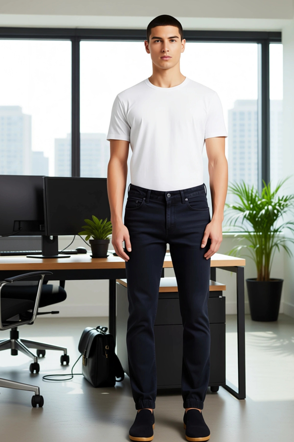 Erkekler için özel olarak tasarlanmış bu jogger kot pantolon, antrasit siyah rengi ve modern dikiş detayları ile dikkat çekiyor. %99 pamuk ve %1 elastan karışımı, kumaşa hem doğal bir his hem de hareket kabiliyeti kazandırıyor. Düz deseni, pantolonu son derece çok yönlü hale getirerek farklı stil ve kombinlere uyum sağlamasına olanak tanıyor. Rahat kalıbı ve lastikli paçaları, gün boyu süren bir konfor sunarken, şık dikiş detayları pantolona özgün bir karakter katıyor. Bu pantolon, özellikle casual ve günlük giyim tarzını benimseyen erkekler için mükemmel bir seçimdir. Pantolonun normal bel yapısı ve kemersiz tasarımı, modern ve minimalist bir görünüm sunar. Jogger silüeti, hem rahatlığı hem de şıklığı bir araya getirerek dinamik bir stil oluşturur. Chino cep detayları, pantolonun fonksiyonelliğini artırırken, düz ve regular boy kesimi her vücut tipine uyum sağlayacak şekilde tasarlanmıştır. Comfort dokuma tipi, kumaşın yumuşaklığını ve cilde dostu yapısını vurgular. Bu pantolon, cool ve konforlu bir duruş sergilemek isteyen erkekler için idealdir ve gardıropların temel parçalarından biri olmaya adaydır. Bu jogger kot pantolon, her mevsimde giyilebilecek bir parçadır. İlkbaharda sneaker ve basic tişört ile, yazın sandalet ve ince bir gömlek ile, sonbaharda bot ve sweatshirt ile, kışın ise kalın bir kazak ve postal ile kombinlenebilir. Özellikle beyaz, gri veya açık mavi tonlarındaki üstlerle harika bir uyum yakalar. Pantolonun bakımında, renklerin canlılığını korumak için ters çevirerek yıkamanız ve ağartıcı kullanmamanız önerilir.