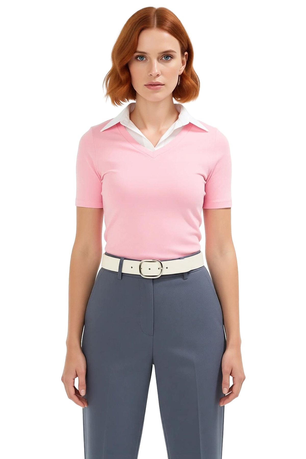 Polo yaka tasarımı ve renk bloklu deseniyle dikkat çeken bluzumuz, regular boyu ve kısa kollarıyla mükemmel bir uyum sağlıyor. Fitted kalıbı sayesinde vücut hatlarınızı zarifçe sarar ve modern bir görünüm oluşturur. Bluzun üzerinde yer alan ince dokuma detayları, tasarıma sofistike bir dokunuş katıyor. Hem günlük hayatta hem de özel davetlerde rahatlıkla kullanabileceğiniz bir parça.