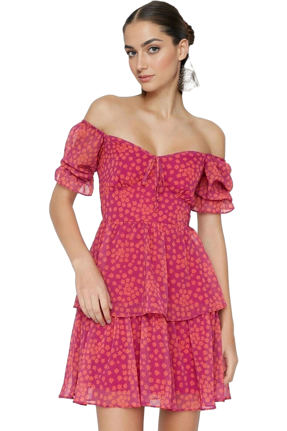 Bu yazın göz alıcı parçası, şıklığı ve rahatlığı birleştiren çiçekli desenli mini elbisemiz! 100% polyester dokuma kumaştan üretilen elbisemiz, nefes alabilir yapısıyla gün boyu konfor sunuyor. Kısa ve balon kollu tasarımıyla feminen bir hava yakalarken, gipeli detayı ve Astarlı yapısıyla da ayrıcalıklı bir deneyim yaşatıyor. Pembe rengi ve çiçek deseninin uyumu, tarzınıza canlılık katacak.