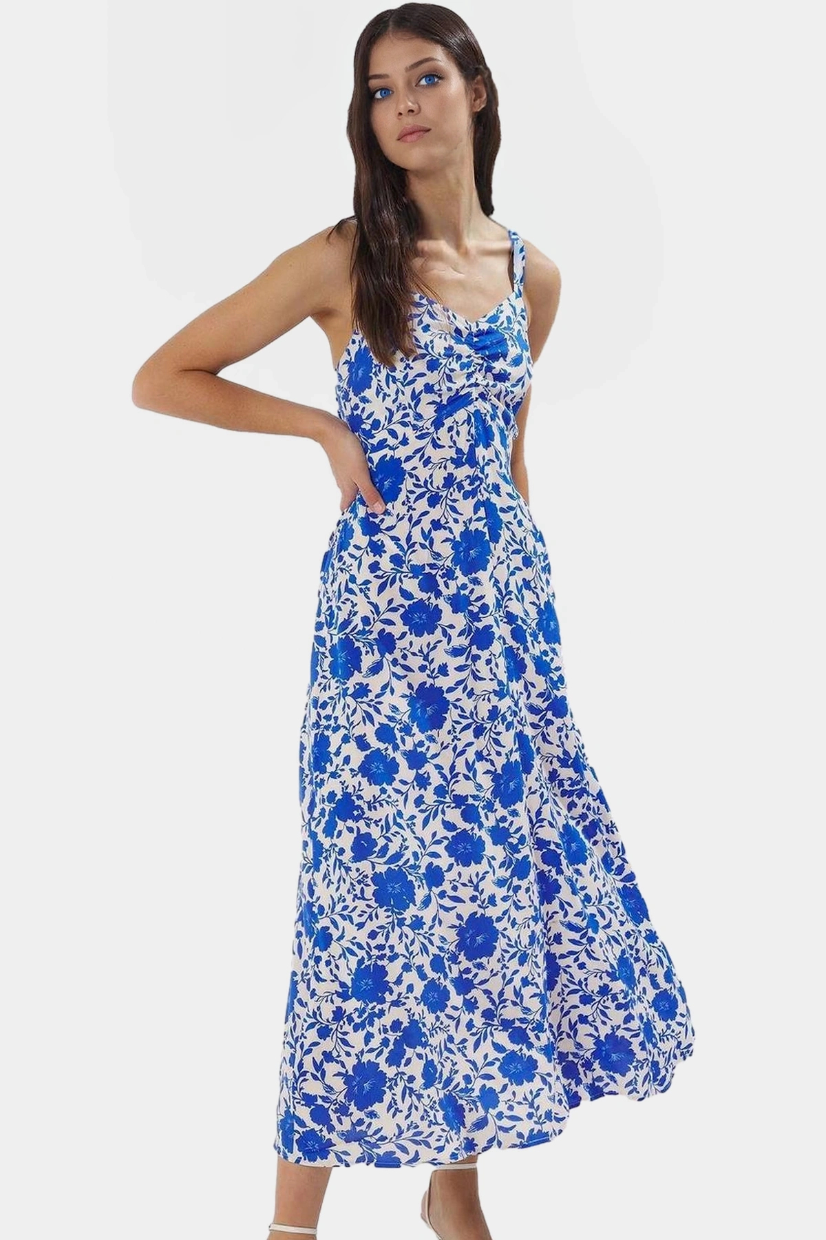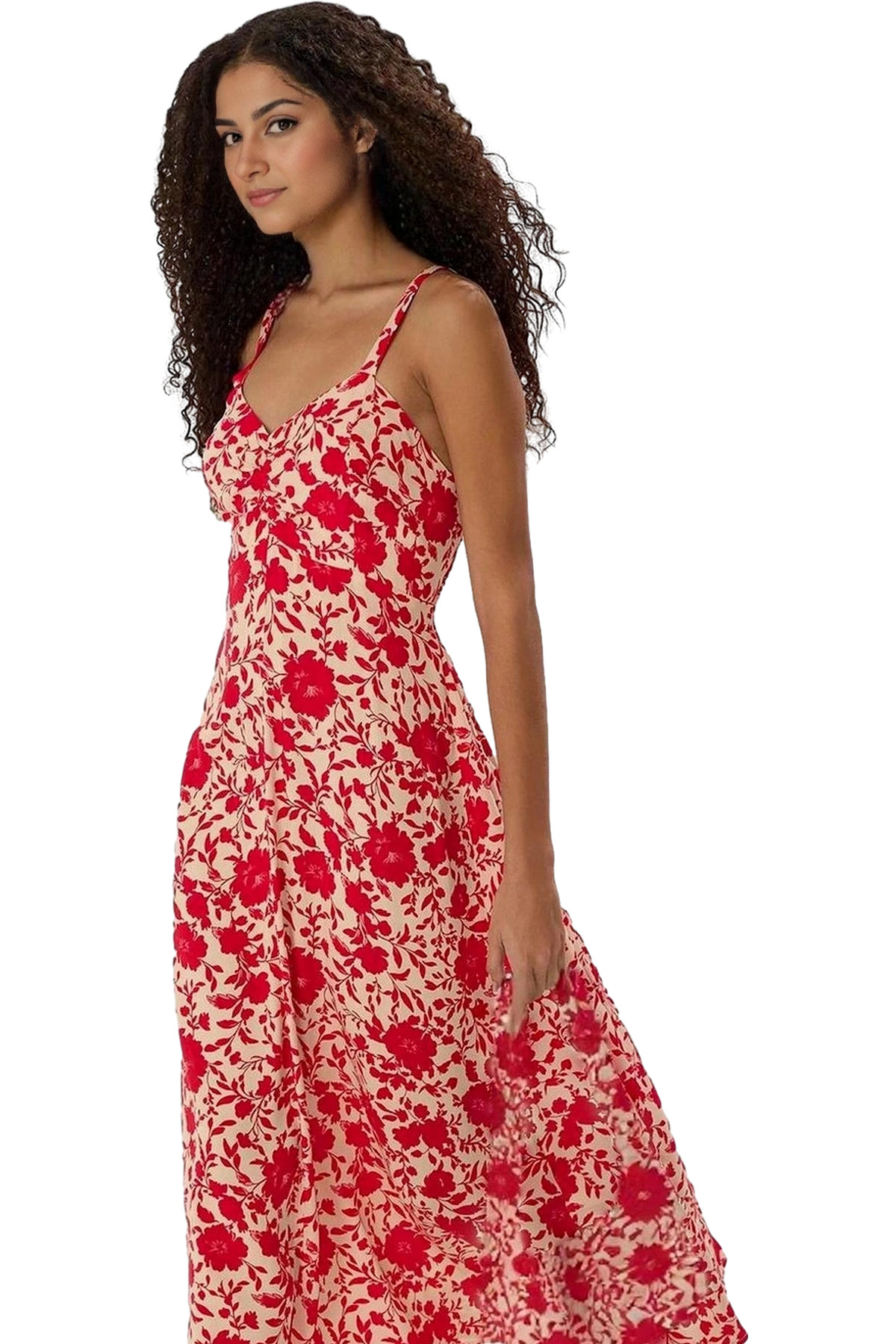 Bu nefes alan, hafif ve şık elbise yaz aylarının vazgeçilmezi olacak! 100% Viskoz dokuma kumaştan üretilen bu midi elbise, gün boyu konfor sunar. Skater kalıbı ile vücudunuzu sararak zarif bir görünüm yaratırken, V yakası şıklığı tamamlar. Canlı çiçek deseni ise tarzınıza enerji katacak. Eteğinin belden açılan özel tasarımıyla hareket özgürlüğü sunan elbise, günlük yaşamınızda ve özel günlerinizde rahatlıkla kullanabilirsiniz. Modelin ölçüleri: Boy: 175cm, Göğüs: 81cm, Bel: 60cm, Kalça: 88cm. Manken S-36 beden giymektedir. Elbisenin ön boyu 125 cm’dir. Makinede yıkanabilir.