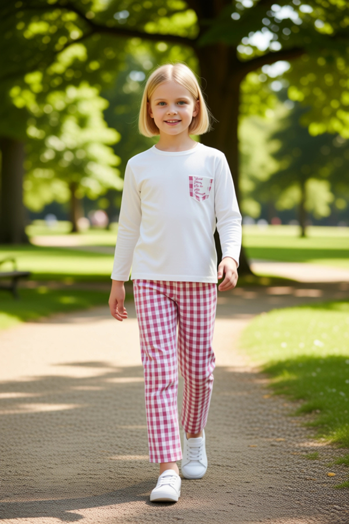 Kız Çocuk Pijama Takımı Yumuşak Kumaş Kareli Detaylar ve Maksimum Konfor Kaliteli Şık Rahat