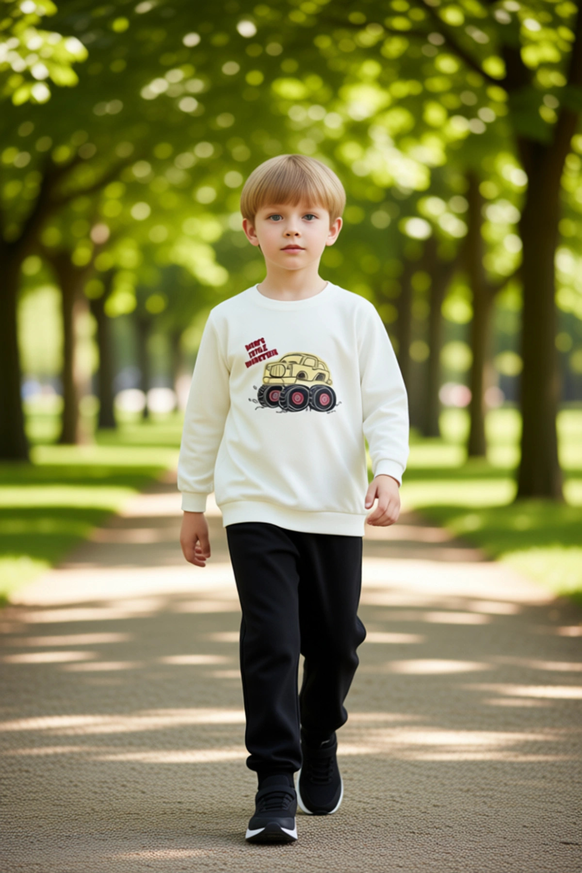 Erkek Çocuk Pamuklu Slogan Detaylı Örme Sweatshirt ve Eşofman Altı Takımı Kaliteli Şık Rahat