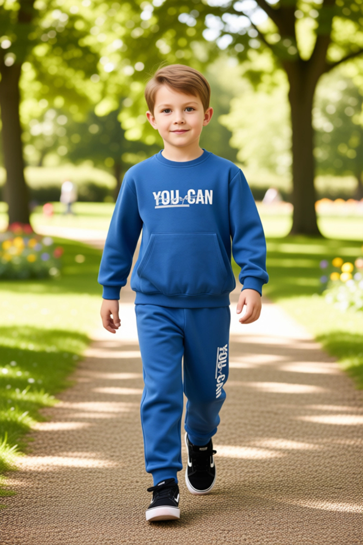 Çocukların dinamik yaşam tarzına uygun olarak tasarlanmış bu örme eşofman ve sweatshirt seti, hem rahatlığı hem de estetik görünümü bir arada sunuyor. Bisiklet yaka, uzun kollu sweatshirt, ön kısmında bulunan fonksiyonel kanguru cebi ile pratik bir kullanım sağlıyor. Üzerindeki dikkat çekici slogan baskısı, çocuğun özgüvenini ve enerjisini yansıtıyor. Sweatshirt’ün regular kalıbı, her vücut tipine uyum sağlayarak maksimum konfor sunar. Eşofman altı ise, esnek bel bandı ve manşetli paçalarıyla hareket kabiliyetini artırırken, şık bir silüet oluşturuyor. Eşofman altının yan tarafında yer alan slogan baskısı, üst parça ile mükemmel bir uyum sergiliyor. Bu takım, %60 pamuk ve %40 polyester içeren, 2 iplik penye dokuma kumaştan üretilmiştir. Bu özel karışım, kumaşın hem nefes alabilirliğini hem de dayanıklılığını en üst düzeye çıkarır. Pamuk, cilde dostu ve yumuşak bir his verirken, polyester ise ürünün çekme ve solma gibi olumsuz etkilere karşı direncini artırır. Casual ve günlük kullanım için ideal olan bu set, kış aylarında çocuğunuzun sıcak kalmasını sağlarken, stilinden de ödün vermemesine olanak tanır. Kolay bakım talimatlarına uyulduğunda uzun yıllar boyunca ilk günkü kalitesini koruyacaktır. Bu ürün, her yaştan çocuğun rahatlıkla kullanabileceği, spor aktiviteleri ve günlük yaşam için ideal bir seçenektir. Çocuğunuzun gardırobuna hem işlevsellik hem de ilham verici bir dokunuş katacaktır.