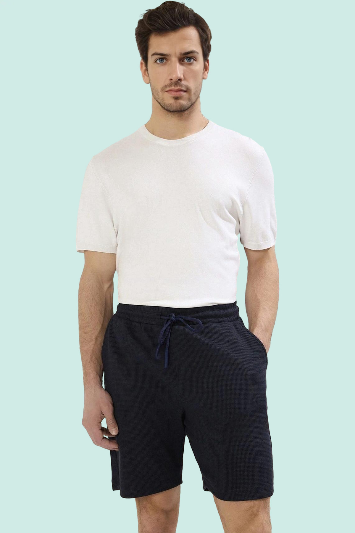 Hem şık hem de rahat, tam da aradığınız şort seti burada! İki farklı renkte (siyah ve lacivert) gelen bu şortlar, yaz aylarının vazgeçilmez parçaları olmaya aday. Yumuşak örme kumaşı, gün boyu konfor sağlarken, normal bel ve boru paça tasarımıyla modern bir tarz yakalayacaksınız. Düz deseniyle her türlü üst giyimle kolayca kombinlenebilen bu şortlar, günlük hayatta şıklıktan ödün vermeden rahat etmenizi sağlayacak.