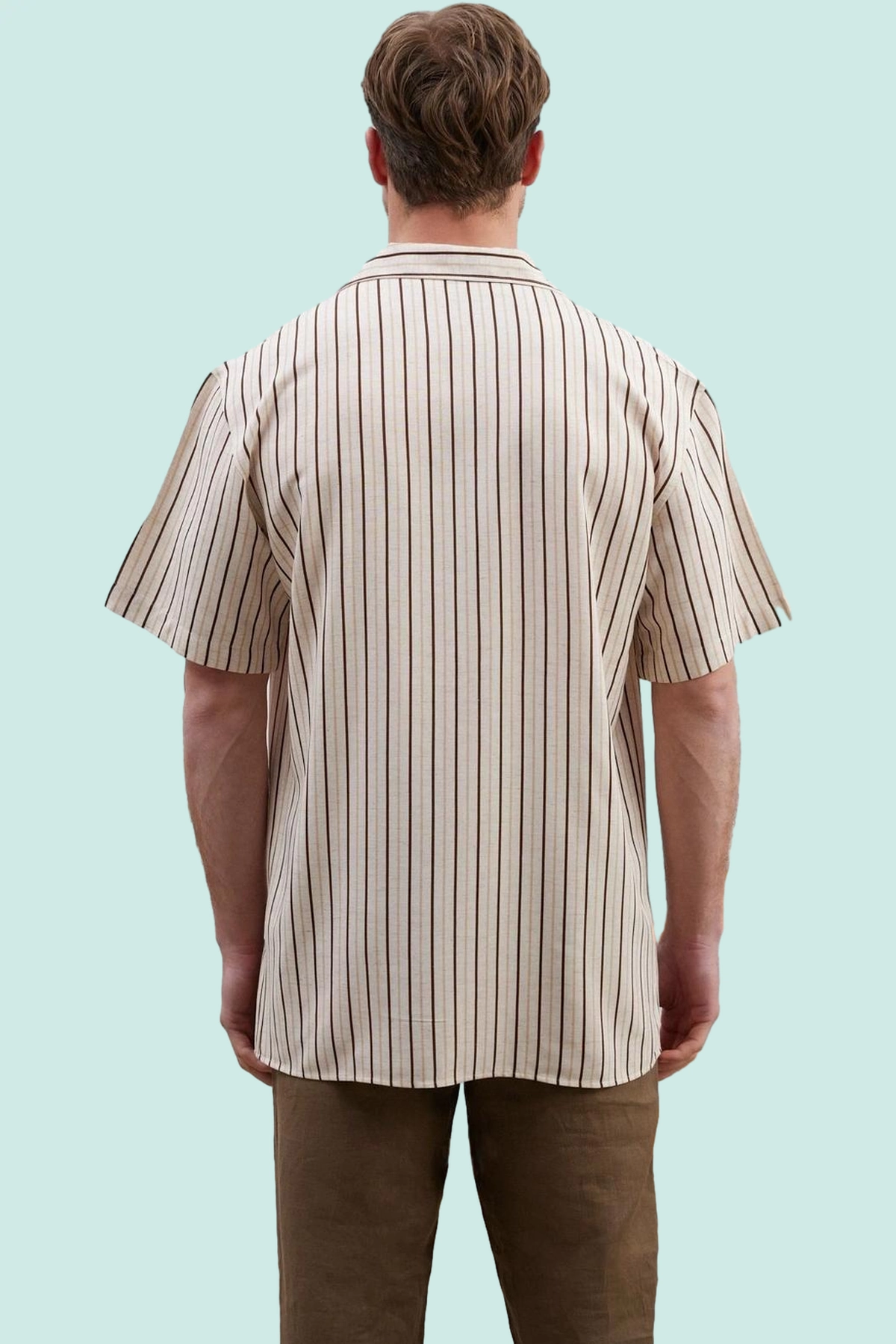 Erkek Basic Oversize Keten Karışımlı Gömlek Çizgili Apaş Yaka Rahat Günlük Kaliteli Malzeme