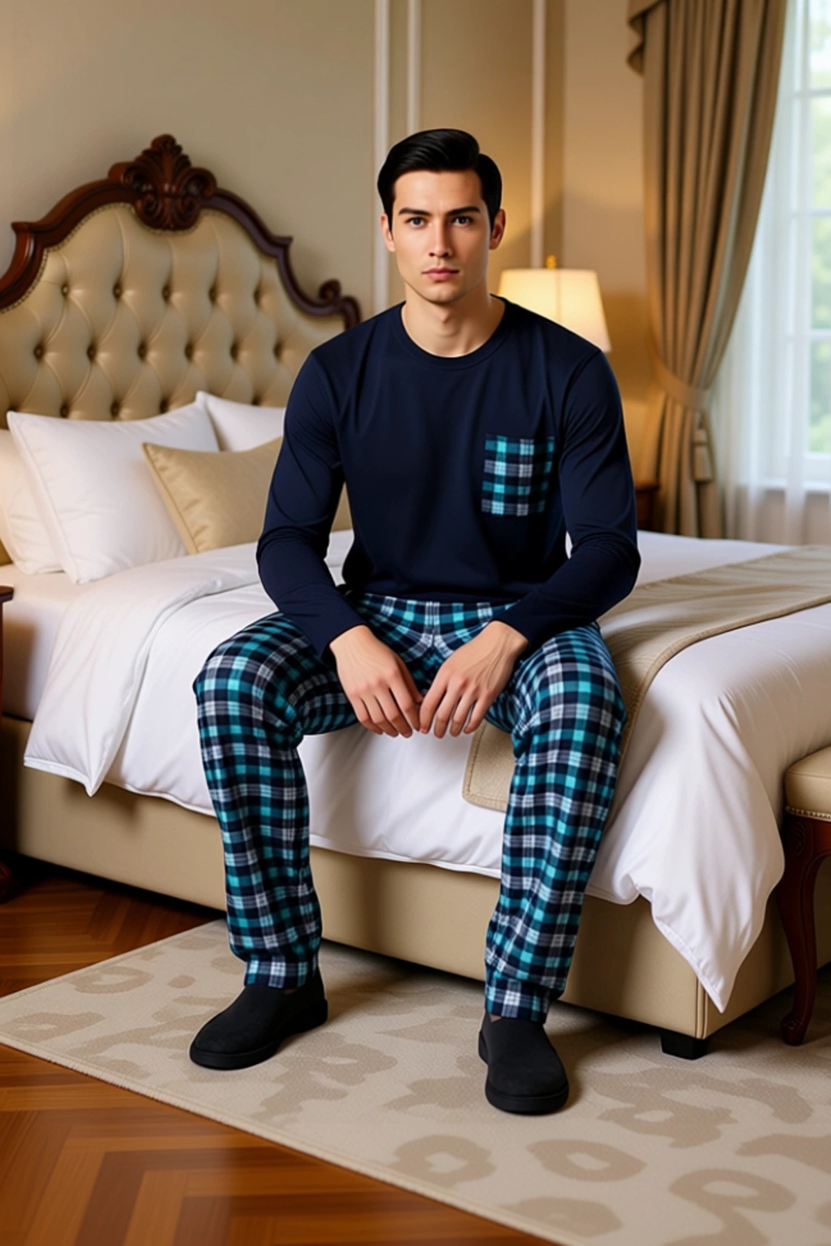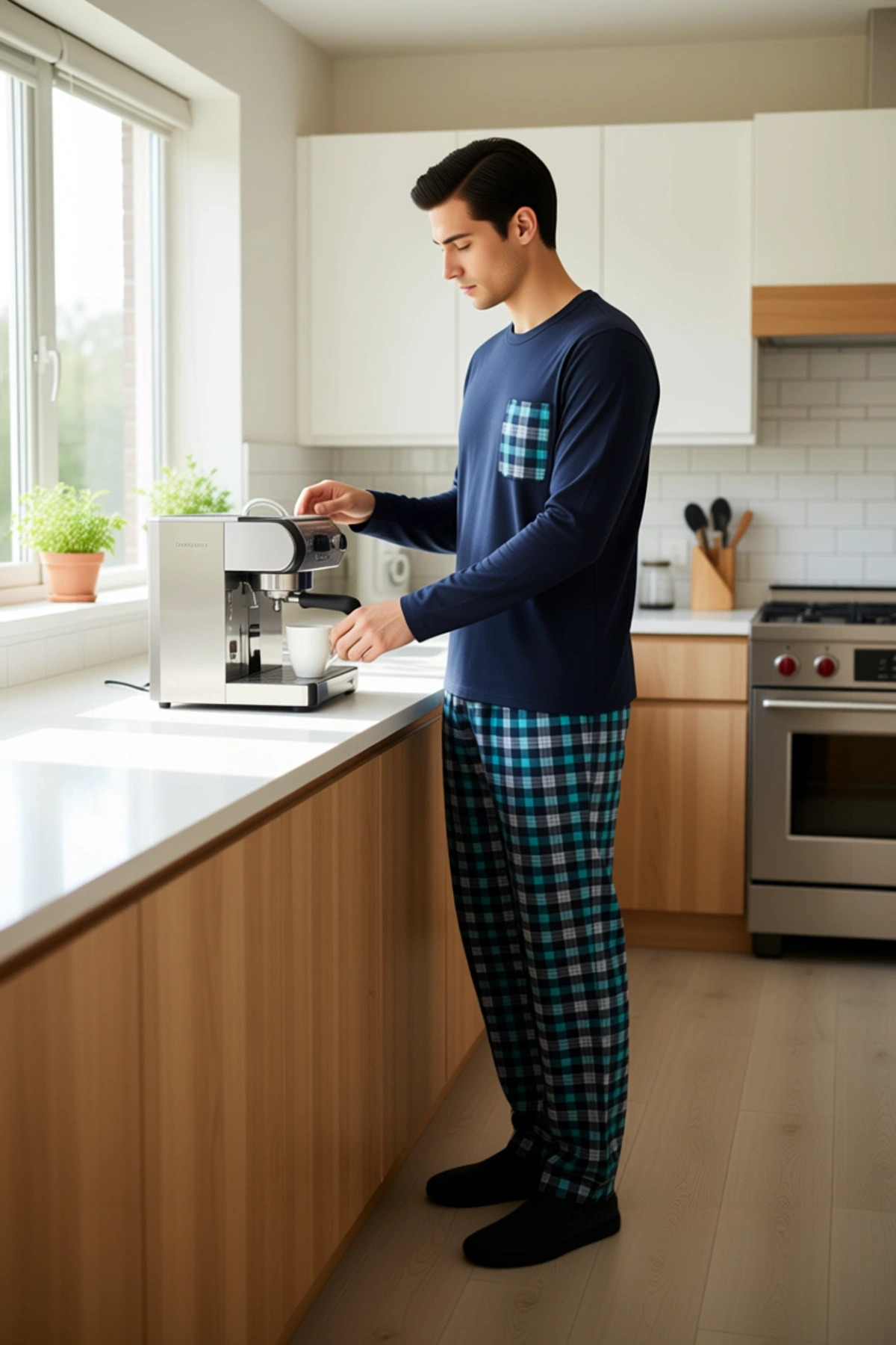 Erkek Bisiklet Yaka Ekose Cep Detaylı Pijama Takımı Fonksiyonel Dayanıklı Kaliteli Estetik