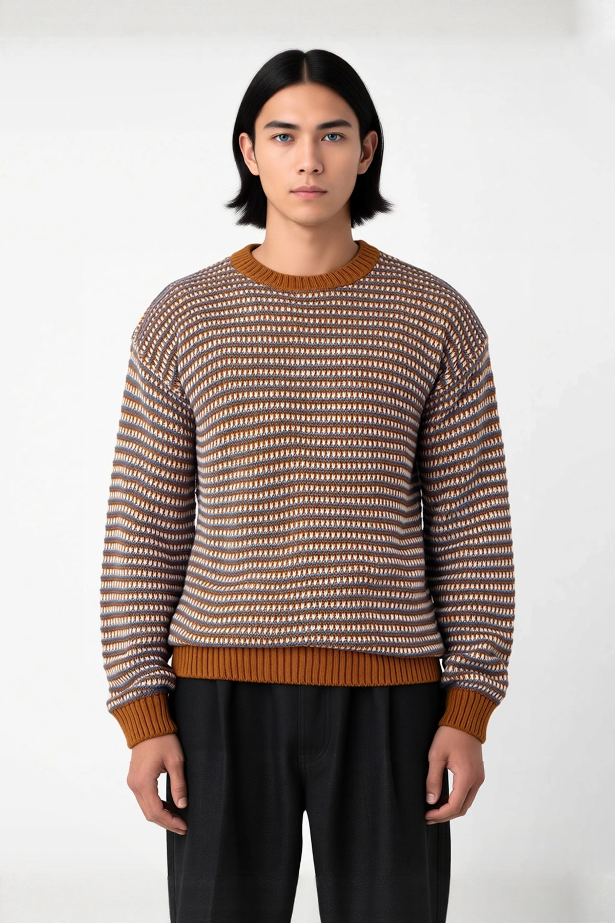 Erkek Casual Bisiklet Yaka Çizgili Dokuma Akrilik Kazak Günlük Kullanım İçin İdeal Uzun Kollu