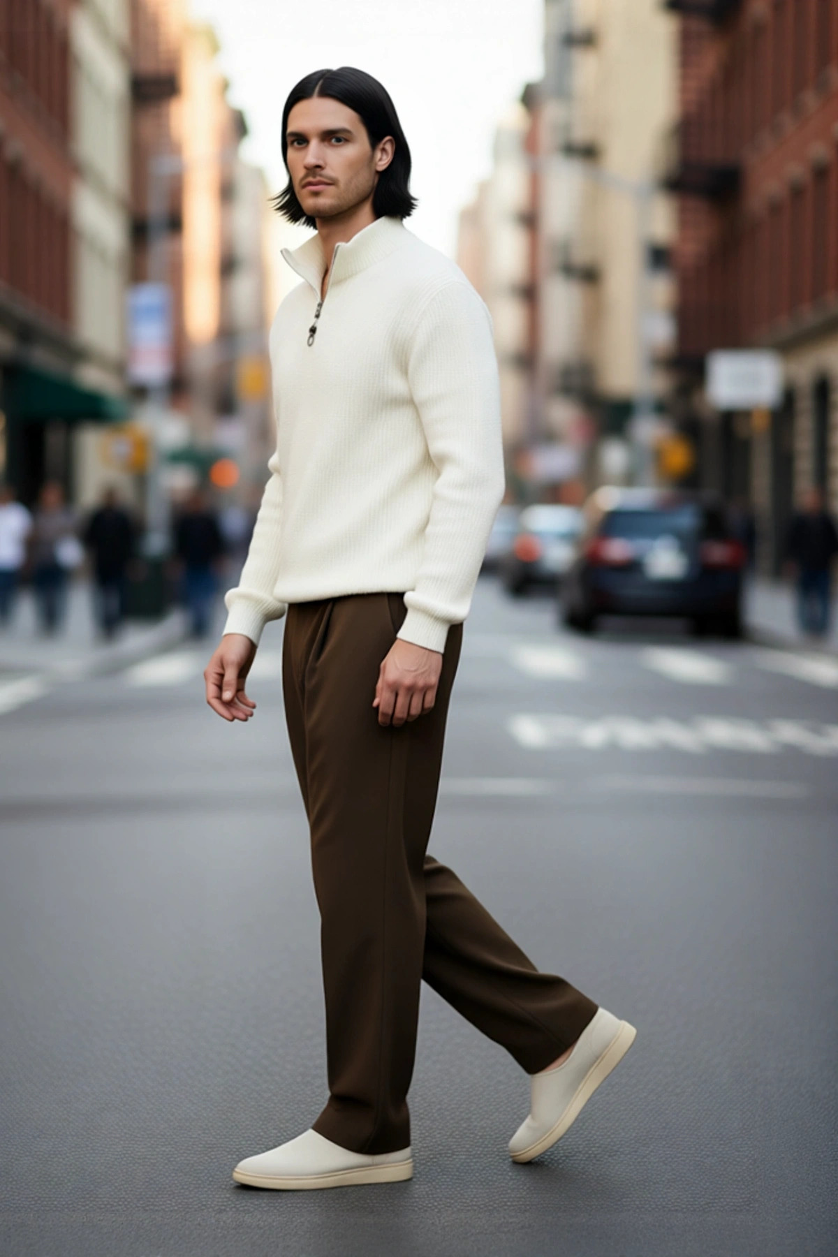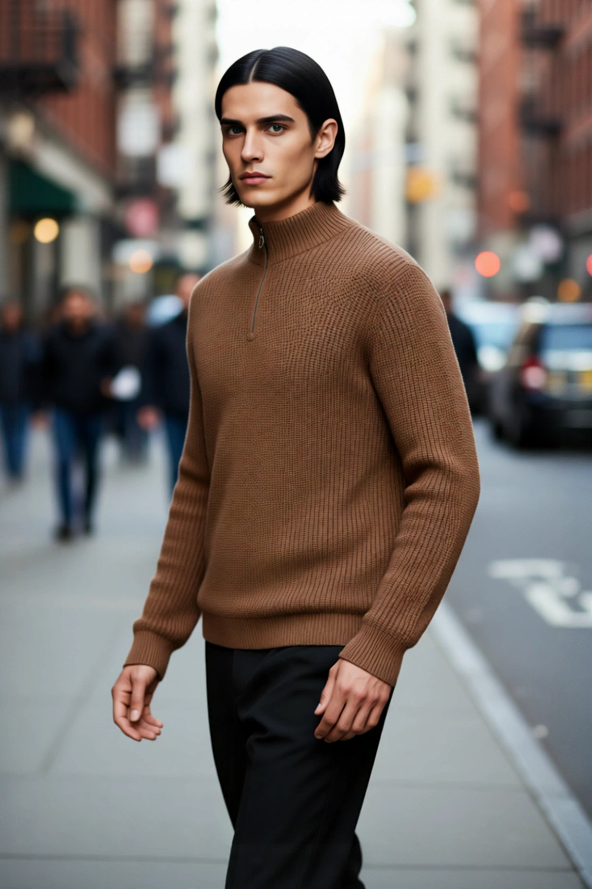 Dik yaka tasarımı, fermuar detayıyla modern bir yorum kazanarak hem şık bir görünüm sunar hem de boynu soğuktan korur. Standart uzun kol yapısı, hareket özgürlüğünü desteklerken, selanik dokuma tekniğiyle üretilen triko kumaşı, kazağa ekstra hacim ve dayanıklılık katar. Bu basic siluet, her gardıropta olması gereken temel bir parça niteliğindedir. Cepsiz ve kemersiz yapısı, sade ve fonksiyonel bir kullanım sunarken, Type 0 yıkama talimatı sayesinde makinede yıkanabilir olması, bakımını son derece pratik hale getirir.