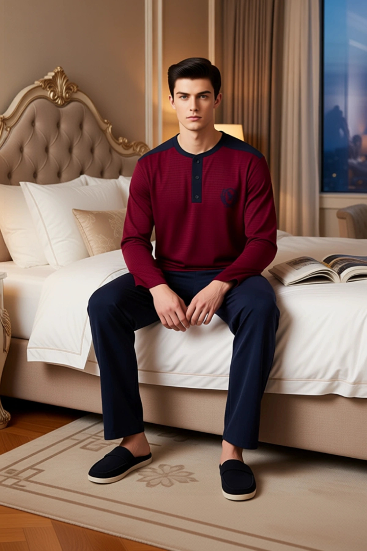 Bu şık erkek pijama takımı, bordo ve lacivert renklerin uyumuyla göz dolduruyor. Üst kısım, ince lacivert çizgilerle hareketlendirilmiş, klasik ve zamansız bir desene sahip. Henley yaka olarak da bilinen düğmeli yaka detayı, ürüne modern bir dokunuş katıyor. Uzun kollu tasarımı, kış aylarında ekstra sıcaklık sağlarken, regular kalıbı sayesinde rahat bir kullanım sunuyor. %60 pamuk ve %40 polyester karışımı örme kumaştan üretilmiş olması, hem yumuşaklığı hem de dayanıklılığı garanti ediyor. Bu pijama takımı, evde geçireceğiniz zamanı konforlu ve stil sahibi kılmak için tasarlandı. Süprem dokuma, kumaşa ekstra bir yumuşaklık ve pürüzsüzlük katıyor. Pantolon ise boru paça kesimiyle rahat bir uyum sağlıyor. Ürünün örme kumaşı, nefes alabilirlik özelliği sayesinde cildinizin rahat etmesini sağlıyor. Düğmeli yaka detayı, isteğe bağlı olarak açılarak daha rahat bir kullanım sunabilir. Uzun kollu yapısı, soğuk havalarda vücut ısısını korumaya yardımcı olur. Regular kalıp, hareket özgürlüğünüzü kısıtlamadan vücudunuza nazikçe oturur. %60 pamuk içeriği, cildinize nazik davranırken, %40 polyester oranı da kumaşın formunu korumasına ve daha az kırışmasına yardımcı olur. Bu pijama takımı, evde dinlenirken veya günlük aktivitelerinizi yaparken size eşlik edecek ideal bir seçenektir. Kış mevsiminin vazgeçilmezi olacak bu pijama takımı, lacivert bir eşofman altı veya rahat bir şort ile harika bir uyum sergiler. Evde giymek için yumuşak ev ayakkabıları veya spor ayakkabılarla kombinleyebilirsiniz. Bu pijama takımının ömrünü uzatmak ve ilk günkü gibi kalmasını sağlamak için, nazikçe yıkayıp düşük ısıda kurutmanız önerilir. Ürün etiketindeki bakım talimatlarına dikkat ederek uzun süreli kullanımın tadını çıkarabilirsiniz.