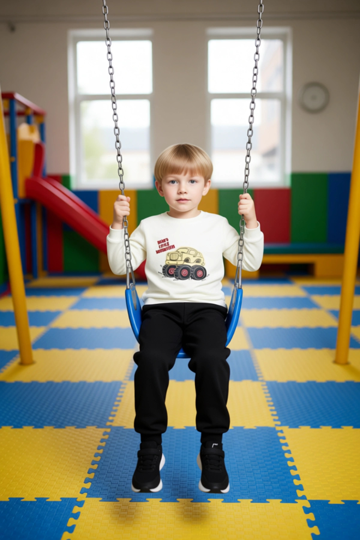 Küçük maceraperestler için tasarlanmış bu iki parçalı set, konforu ve eğlenceli tasarımı bir araya getiriyor. Üst kısım, yumuşak ve nefes alabilen %100 pamuklu örme kumaştan üretilmiş, bisiklet yakalı bir sweatshirt’tür. Sweatshirt’ün önünde yer alan ‘Mom’s Little Monster’ yazısı ve dikkat çekici canavar kamyonet baskısı, çocuğunuzun ilgisini çekecektir. Bu baskı, onun hayal dünyasını zenginleştirecek ve oyunlarına neşe katacaktır. Regular kalıbı ve standart kol tipi, çocuğunuzun rahatça hareket etmesine olanak tanır. 2 iplik penye dokuma, kumaşa ekstra yumuşaklık kazandırır. Alt kısım ise, belinde ayarlanabilir büzgülü ipi ve pratik yan cepleri bulunan rahat bir eşofman altıdır. Bu eşofman altı da aynı şekilde %100 pamuklu örme kumaştan yapılmıştır, bu da gün boyu süren bir konfor sağlar. Casual/günlük kullanım için ideal olan bu takım, özellikle kış aylarında çocuğunuzu sıcak tutacaktır. Ürün, Türkiye’de üretilmiştir ve bakım talimatları T52 olarak belirtilmiştir. Bu set, hem okulda hem de evde kullanıma uygun olup, çocuğunuzun gardırobuna pratik ve stil sahibi bir parça ekleyecektir. Pamuklu materyali, hassas ciltler için güvenli ve hipoalerjeniktir. Eşofman altının esnek bel bandı, farklı vücut tiplerine uyum sağlar. Canavar kamyonet teması, otomobil ve macera seven erkek çocuklar için harika bir hediye seçeneği olabilir. Bu takım, çocuğunuzun enerjik yaşam tarzına uyum sağlayacak şekilde tasarlanmıştır.