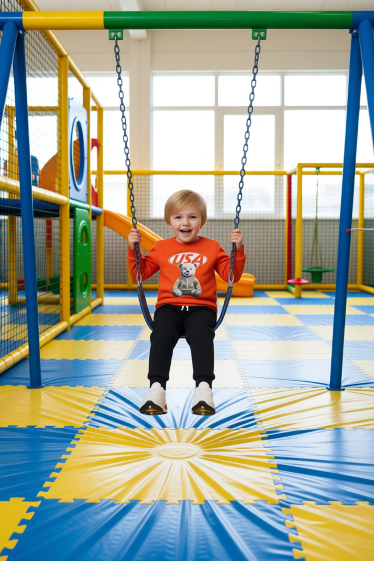 Bu erkek çocuk spor takımı, hareketli miniklerin konforunu ve stilini ön planda tutarak tasarlanmıştır. Üst kısımda yer alan bisiklet yaka ve uzun kollu tasarım, soğuk havalarda ekstra sıcaklık sağlar. Üzerindeki sevimli ayıcık ve ‘USA’ baskısı, takımın enerjik ve eğlenceli karakterini vurgular. Bu baskı, çocuğunuzun ilgisini çekecek ve giyimini daha eğlenceli bir deneyim haline getirecektir. Alt kısım, regular kalıpta ve uzun bir tasarıma sahiptir. Esnek bel bandı sayesinde çocuğunuzun hareketlerini kısıtlamadan gün boyu maksimum konfor sunar. Bu özellik, oyun oynarken veya çeşitli aktiviteler sırasında rahatlık sağlar. Kumaş dokusu olarak 3 iplik şardonsuz örme kullanılmıştır. Bu, hem kumaşın dayanıklılığını artırır hem de yumuşak bir dokunuş hissi verir. Materyal bileşeni %60 pamuk ve %40 polyesterden oluşmaktadır. Pamuk, cildin nefes almasına yardımcı olarak terlemeyi azaltır ve rahatlık sağlar. Polyester ise takımın daha uzun ömürlü olmasına ve şeklini korumasına katkıda bulunur. Bu alt-üst takım, casual ve günlük kullanıma son derece uygundur. Özellikle kış sezonunda çocuğunuzun sıcak kalmasını sağlamak için ideal bir seçenektir. Yıkama talimatı T01’e uyularak temizlenmesi tavsiye edilir. Bu ürün, Türkiye’de üretilmiş olup, kalitesi ve tasarımı ile öne çıkar. ‘Childish’ yani çocuksu bir ruha sahip olan bu takım, miniklerin enerjisine ve oyun dolu dünyasına uyum sağlamak üzere tasarlanmıştır. Ayıcık figürünün sevimli duruşu ve genel tasarımın rahatlığı, bu takımı çocuğunuzun gardırobunun vazgeçilmez bir parçası haline getirecektir. Kaliteli malzemesi ve dikkat çekici grafikleri ile bu spor takım, hem çocuklar hem de ebeveynler için harika bir tercihtir. Çocuğunuzun hareketli yaşam tarzına uygun olarak üretilmiş bu set, ona hem rahatlık hem de stil sunar. Farklı etkinliklerde kolaylıkla giyilebilen bu takım, pratikliği ve estetik görünümü bir araya getirir. Erkek çocukları için özel olarak tasarlanmış bu ürün, onların kişisel tarzlarını oluşturmalarına yardımcı olur.