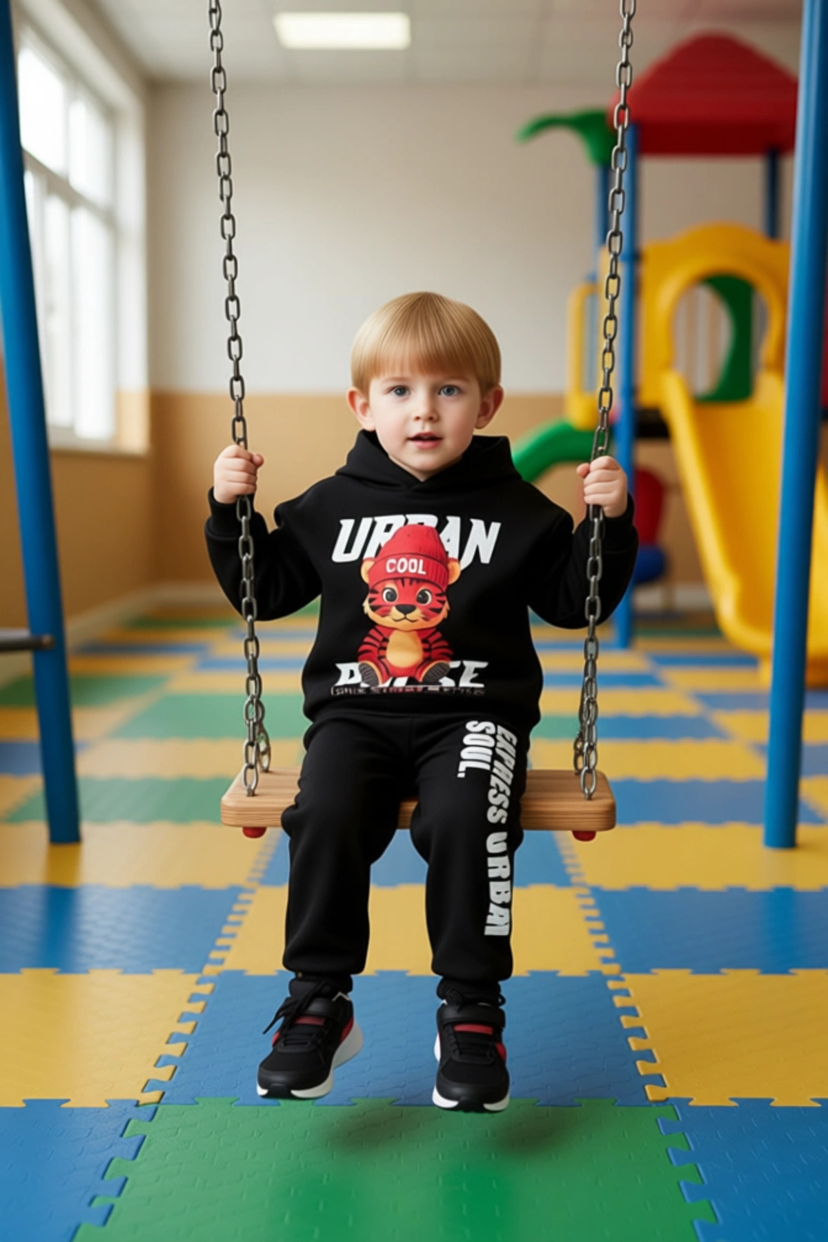 Erkek Çocuk Kapüşonlu Sweatshirt ve Eşofman Altı Kaplan Figürlü Şık Takım Kaliteli Şık Rahat
