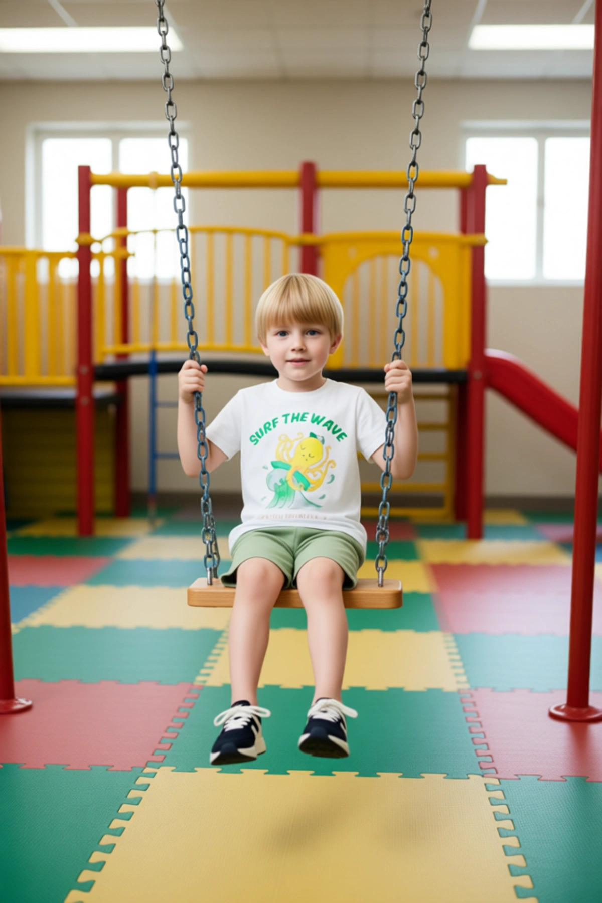 Bu iki parçalı erkek çocuk giyim seti, sıcak yaz günlerinde maksimum konfor ve eğlenceli bir stil sunmak üzere tasarlanmıştır. Setin üst parçası, klasik bisiklet yaka ve kısa kollu bir tasarıma sahiptir. Üzerindeki dikkat çekici baskı, ‘Surf The Wave’ sloganı eşliğinde, dalgaların üzerinde neşeyle sörf yapan sevimli bir ahtapot figürünü içerir. Bu canlı ve enerjik baskı, çocuğunuzun enerjisini ve oyunbaz ruhunu yansıtmak için idealdir. Üstün regular kalıbı, her türlü aktivite sırasında rahatlık sağlar. Kumaş bileşimi, %71 oranında yüksek kaliteli pamuk, %22 polyester ve %7 elastan içermektedir. Pamuk, cilde nefes alabilirlik ve yumuşaklık sunarken, polyester dayanıklılığı artırır ve renklerin solmasını engeller. Elastan ise kumaşa esneklik kazandırarak çocuğunuzun hareket özgürlüğünü kısıtlamaz. Bu sayede, üst, hem yumuşak hem de dayanıklı bir yapıya sahip olur. Alt parça olarak yer alan şort, esnek bel bandı sayesinde kolayca giyilip çıkarılabilir ve gün boyu süren bir rahatlık sunar. Şortun kesimi, hareket özgürlüğünü destekleyecek şekilde tasarlanmıştır, bu da onu oyun oynamak, koşmak veya dinlenmek için mükemmel kılar. Bu takım, özellikle yaz mevsimi için idealdir ve çocuğunuzun serin kalmasına yardımcı olur. Ürün, Türkiye’de üretilmiştir ve kalitesiyle öne çıkar. Bakımı oldukça pratiktir; T01 yıkama talimatlarına uyulduğu sürece makinede yıkanabilir. Bu set, plaj aktivitelerinden günlük gezintilere kadar her durum için uygundur. Çocuğunuzun gardırobuna neşeli bir dokunuş katacak bu takım, aynı zamanda pratik ve dayanıklı bir seçenektir. Ebeveynler için de kolay bakım avantajı sunar. Bu ürün, çocuğunuzun hem rahat hem de stil sahibi olmasını sağlayarak yaz maceralarını daha keyifli hale getirecektir. Baskının detayları ve kumaşın dokusu, ürünün genel kalitesini ve çekiciliğini artırır. Bu set, çocuğunuzun sevdiği karakterlerle ve eğlenceli tasarımlarla dolu bir gardırop oluşturmasına yardımcı olur. Pamuklu yapısı, hassas ciltler için de uygunluk sağlar.
