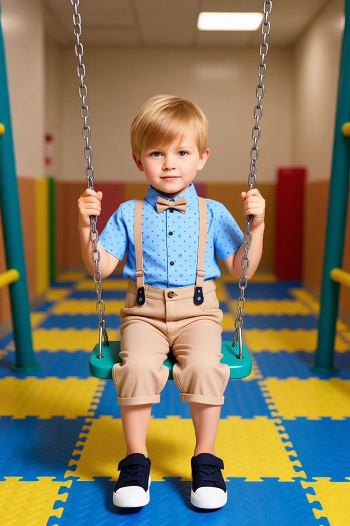 Bu erkek çocuk takımı, %100 pamuktan üretilmiş olup, yaz aylarında serin ve rahat bir kullanım sunar. Gömlek, kısa kollu, puantiyeli desene sahip ve basic bir silüete sahiptir. Gömlek yaka ve standart kol tipi ile tasarlanmıştır. Şort ise regular kalıpta, cepsiz ve kemersizdir, bu da çocuğun hareket özgürlüğünü artırır. Takımın en dikkat çekici özelliklerinden biri, şık bir papyon ve ayarlanabilir askılarının olmasıdır. Bu detaylar, takıma bir dokunuş katarken, aynı zamanda pratik bir kullanım sunar. Ürün, casual ve günlük kullanım için idealdir. Poplin dokuma tipi, kumaşa yumuşaklık ve nefes alabilirlik kazandırır. Bu set, küçük beylerin hem şık hem de konforlu olmasını sağlamak amacıyla özenle tasarlanmıştır. Türkiye’de üretilen bu ürün, kaliteli malzemelerden yapılmıştır. Kolay yıkanabilir ve dayanıklı yapısı sayesinde uzun süreli kullanım vaat eder. Ürün, astar içermez, bu da sıcak havalarda ekstra konfor sağlar. Papyon ve askılar, takımın genel estetiğini tamamlar ve farklı kombinler yapma imkanı sunar. Bu alt-üst takım, özel günler veya günlük aktiviteler için mükemmel bir seçenektir. Çocuğunuzun gardırobuna stil sahibi bir ekleme yapacak bu takım, hareket özgürlüğünü kısıtlamadan şıklık sunar. %100 pamuk içeriği, hassas ciltler için de uygunluk sağlar. Ürün, herhangi bir sürdürülebilirlik detayı içermemektedir. Yıkama talimatları T01 olarak belirtilmiştir. Bu ürün, erkek çocuklar için özel olarak tasarlanmış olup, yaş grubuna uygun ölçülerde üretilmiştir. Ürün, rahatlığı ve şıklığı bir arada sunarak, çocuğunuzun her ortamda dikkat çekmesini sağlar. Papyon detayı, takıma resmi bir hava katarken, şortun rahatlığı günlük kullanım için idealdir. Bu set, çocuğunuzun giyim tercihlerinde stil sahibi bir başlangıç yapmasına yardımcı olacaktır. Pamuklu yapısı, cildin nefes almasını sağlayarak alerji riskini azaltır. Yazlık bir ürün olması, sıcak havalarda serin kalmasına olanak tanır. Bu takım, hem oyun zamanlarında hem de özel davetlerde çocuğunuzun rahat ve şık görünmesini sağlayacaktır. Askıların ayarlanabilir olması, farklı boylardaki çocuklar için kullanım kolaylığı sunar. Papyonun çıkarılabilir olması, farklı kombinler yapma imkanı da tanır. Bu ürün, erkek çocuk giyiminde kalite ve şıklığı bir araya getiren bir seçenektir.