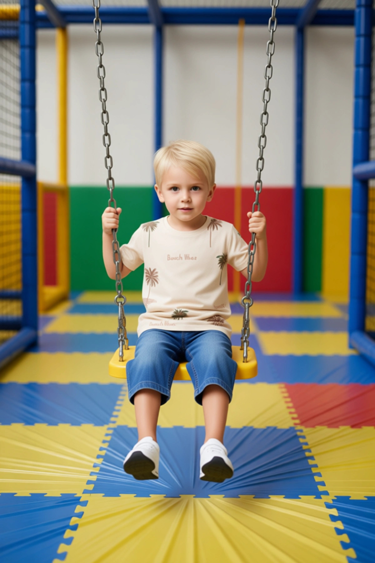Bu erkek çocuk takım seti, %100 pamuklu tişörtü ve dayanıklı denim şortu ile yaz ayları için ideal bir seçenektir. Tişört, kısa kollu ve bisiklet yaka tasarımıyla serin ve rahat bir kullanım sunar. Üzerindeki palmiye ağacı baskısı, tatil temalı bir görünüm kazandırır ve çocuğunuzun enerjik kişiliğini yansıtır. Regular kalıp, her bedene uyum sağlarken, süprem dokuma kumaşı yumuşaklığı ile cilde dosttur. Denim şort, günlük kullanıma uygun, esnek ve sağlam bir yapıya sahiptir. Bu takım, casual ve günlük aktiviteler için mükemmeldir. Çocuğunuzun oyun oynarken, parkta gezerken veya arkadaşlarıyla buluşurken rahat etmesini sağlar. Pamuk materyali, nefes alabilirliği sayesinde sıcak havalarda bile serin kalmasına yardımcı olur. Tişörtün üzerindeki “Beach Vibes” yazısı, yazın keyifli atmosferini çağrıştırır. Bu set, hem şık hem de fonksiyonel bir tasarıma sahiptir. Tişört ve şort, ayrı ayrı da farklı kıyafetlerle kombinlenebilir, bu da gardırop çeşitliliğini artırır. Türkiye’de üretilen bu ürün, çocukların sağlığı ve konforu düşünülerek tasarlanmıştır. Yıkama talimatlarına uyulduğunda uzun ömürlü bir kullanım sunar. Yaz koleksiyonunun öne çıkan parçalarından biri olan bu takım, çocuğunuzun stilini tamamlarken, hareket özgürlüğünü de kısıtlamaz. Kaliteli işçilik ve malzeme, bu setin uzun süre favori kalmasını sağlayacaktır. Ebeveynler için pratik ve şık bir çözüm sunan bu takım, çocuğunuzun yaz gardırobuna neşe katacaktır. Palmiye baskısı, çocuğunuzun hayal dünyasını zenginleştirecek ve ona keyifli bir stil sunacaktır. Denim şortun klasik görünümü, tişörtün modern tasarımıyla dengeli bir uyum içindedir. Bu set, çocuğunuzun yaz maceralarında ona eşlik edecek rahat ve stil sahibi bir seçenektir. Sıcak günlerde serin kalmasını ve özgürce hareket etmesini sağlayan bu ürün, hem çocuklar hem de ebeveynler tarafından beğenilecektir. Tişörtün üzerindeki baskı, yazın enerjisini ve neşesini yansıtır. Bu takım, çocuğunuzun yaz boyunca en çok tercih edeceği parçalardan biri olacaktır.