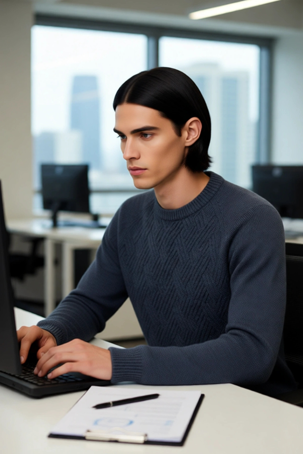 Erkekler için tasarlanan bu fitted kalıp triko kazak, modern erkeğin şıklık ve rahatlık beklentilerini fazlasıyla karşılıyor. Vücuda oturan kesimiyle atletik bir görünüm sağlarken, akrilik, polyester ve yün karışımı materyali sayesinde kış aylarında üstün yalıtım ve sıcaklık sunar. Lacivert rengin zamansız çekiciliği, dokulu desenin getirdiği hareketlilikle birleşerek her ortamda dikkat çekici bir stil yaratır. Baskısız ve düz yapısı, sade ve zarif bir estetik arayanlar için ideal olup, Cool & Comfort personasını başarıyla yansıtır. Bu kazak, soğuk havalarda stilinden ödün vermek istemeyen erkekler için mükemmel bir seçimdir.