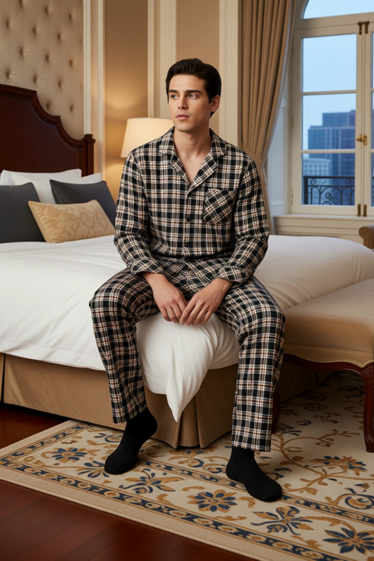Erkek Flanel Ekose Pijama Gömlek ve Pantolon Seti Fonksiyonel Dayanıklı Kaliteli Konforlu Şık
