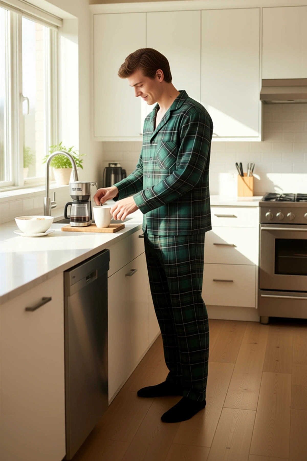 Erkek Flanel Ekose Pijama Takımı Gömlek ve Pantolon Fonksiyonel Dayanıklı Kaliteli Estetik
