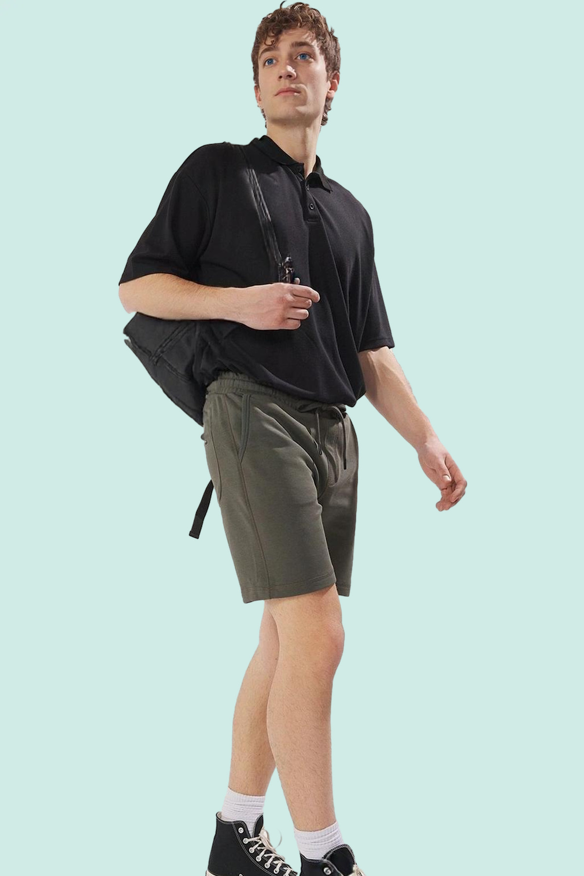 Yaz aylarında serin kalmanın ve şık görünmenin en kolay yolu, işte bu rahat ve şık haki şort! Normal bel kesimine sahip olan bu şort, boru paça tasarımıyla modern bir görünüm sunuyor. 57% pamuk ve 43% polyester karışımından üretilen nefes alan kumaşı, gün boyu konforlu bir kullanım sağlıyor. Yan cep detayları ile pratik bir kullanım sunarken, 3 iplik penye dokuma tipiyle de dayanıklılığını kanıtlıyor.