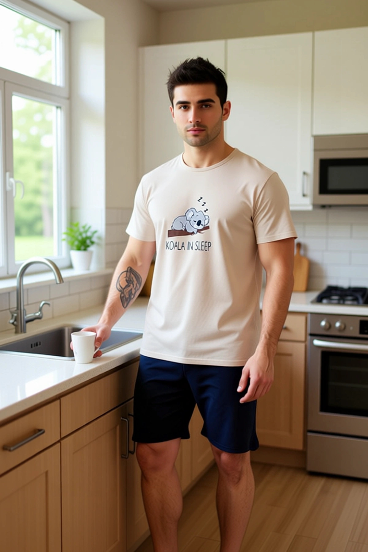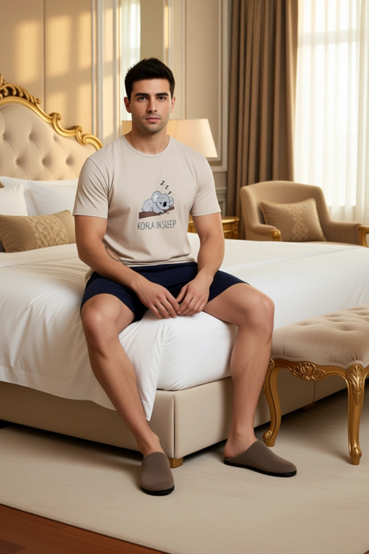 Bu erkek pijama takımı, rahatlığı ve eğlenceli tasarımıyla ev giyiminde fark yaratıyor. Tişörtün üzerindeki sevimli koala baskısı ve “KOALA IN SLEEP” yazısı, takıma neşeli bir hava katıyor. Bisiklet yaka ve kısa kollu kesimi, sıcak günlerde serin ve rahat hissetmenizi sağlıyor. Regular fit kalıbı, hareketlerinizi kısıtlamadan maksimum konfor sunuyor. %50 pamuk ve %50 polyester karışımı örme kumaş, hem yumuşak dokusuyla cildinizi okşuyor hem de dayanıklılığıyla uzun ömürlü bir kullanım vadediyor. Kumaşın nefes alabilen yapısı, gün boyu ferahlık sağlıyor. Indigo renkli şortlar, tişörtün bej rengiyle şık bir kontrast oluşturarak modern bir görünüm sunuyor. Bu takım, rahatına düşkün erkekler için hem şık hem de konforlu bir ev giyimi alternatifi sunuyor. Takımın üst kısmında klasik bisiklet yaka ve standart kısa kol detayı bulunuyor. Alt kısımda ise rahat bir kullanım sunan normal bel ve boru paça şortlar yer alıyor. Regular fit kesim, vücuda yapışmayan, rahat bir silüet çiziyor. Rejenere süprem dokuma tipi, kumaşa yumuşaklık ve akıcılık kazandırarak giyim konforunu artırıyor. Bu iki parçalı pijama takımı, özellikle evde dinlenirken veya günlük aktivitelerde rahatlık arayan erkekler için idealdir. %50 pamuk ve %50 polyester içeriği, hem cildinize nazik davranıyor hem de bakımını kolaylaştırıyor. Bu örme kumaş, özellikle yaz aylarında serin tutma özelliğiyle öne çıkıyor. Yaz mevsiminde rahat bir kullanım sunan bu pijama takımı, evde geçirilen zamanları daha keyifli hale getiriyor. Günlük kullanımda, rahat bir jogger pantolon veya şort ile kombinleyerek spor bir tarz yakalayabilirsiniz. Ev içinde ise sadece şortlarıyla birlikte kullanmak da mümkündür. Ayakkabı olarak rahat terlikler veya spor ayakkabılar tercih edilebilir. Kumaşın yapısını korumak ve renklerin canlılığını sürdürmek için düşük sıcaklıkta yıkama tavsiye edilir. Bu basit bakım adımlarıyla pijama takımınızın ömrünü uzatabilirsiniz.