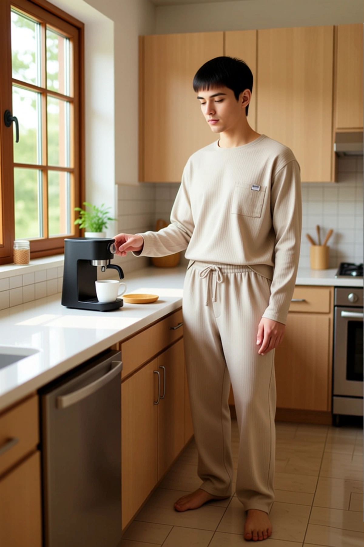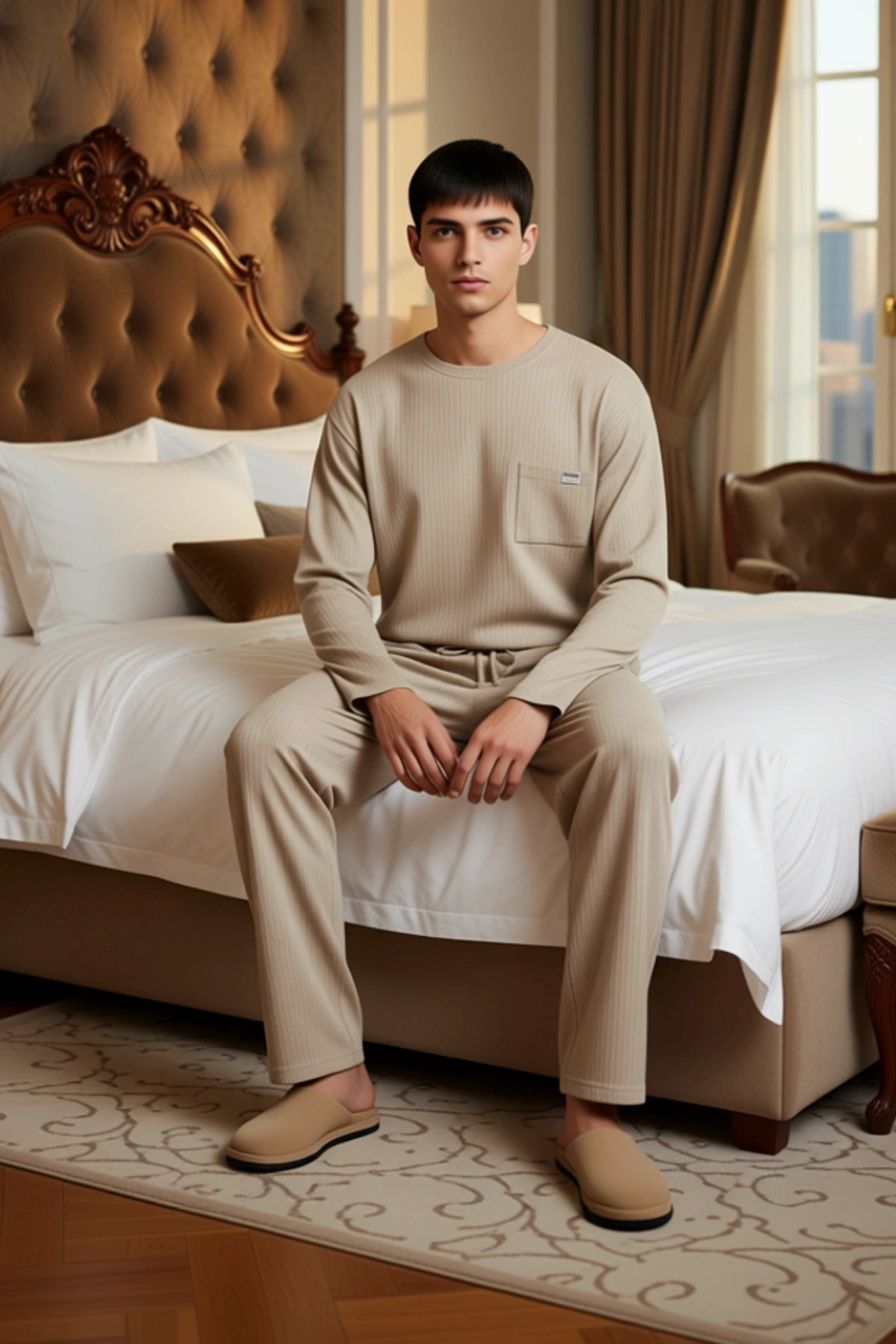 Bu erkek ev giyim seti, modern tasarımı ve üstün konforuyla öne çıkıyor. Sweatshirt, bisiklet yaka ve uzun kollu olarak tasarlanmış olup, ön kısmında şık bir cep detayı bulunmaktadır. Pantolon ise boru paça kesimi ve ayarlanabilir bel kordonu ile maksimum rahatlık sunar. Setin tamamı, %51 polyester ve %49 pamuk karışımından oluşan kaşkorse örme kumaştan üretilmiştir. Bu özel kumaş yapısı, yumuşak bir dokunuş sağlarken, aynı zamanda esnekliği sayesinde hareketlerinizi kısıtlamaz. Bej rengi ve zarif dokusu, takıma sofistike bir hava katıyor. Bu takım, evde geçirdiğiniz zamanı hem konforlu hem de stil sahibi kılmak için ideal bir seçimdir. Sweatshirtün regular fit kalıbı, rahat bir kullanım sunarken, bisiklet yaka detayı klasik bir görünüm sağlar. Uzun kolları, soğuk günlerde ekstra sıcaklık sunar. Pantolonun boru paça kesimi, gün boyu rahatlık sağlarken, belindeki kordon sayesinde istediğiniz gibi ayarlayabilirsiniz. Kumaşın yumuşaklığı, cildinize nazikçe dokunarak gün boyu süren bir konfor deneyimi yaşatır. Bu takım, evde dinlenirken, film izlerken veya günlük işlerinizi yaparken size eşlik edecek mükemmel bir seçenektir. Şık ve fonksiyonel tasarımı, ev giyim dolabınızın vazgeçilmez bir parçası olmasını sağlayacaktır. Kış mevsimi için tasarlanan bu rahat ev giyim seti, evdeki zamanınızı daha keyifli hale getirecek. Bu takımı, yumuşak bir ev terliği veya spor ayakkabı ile kombinleyerek rahat ve şık bir ev görünümü elde edebilirsiniz. Üzerine giyeceğiniz rahat bir hırka ile dışarıda da kullanabilirsiniz. Takımın uzun ömürlü olması için, kumaşın yapısını koruyacak şekilde bakım yapılması önemlidir. Üretici talimatlarına uygun yıkama, takımınızın ilk günkü kalitesini korumasına yardımcı olacaktır.