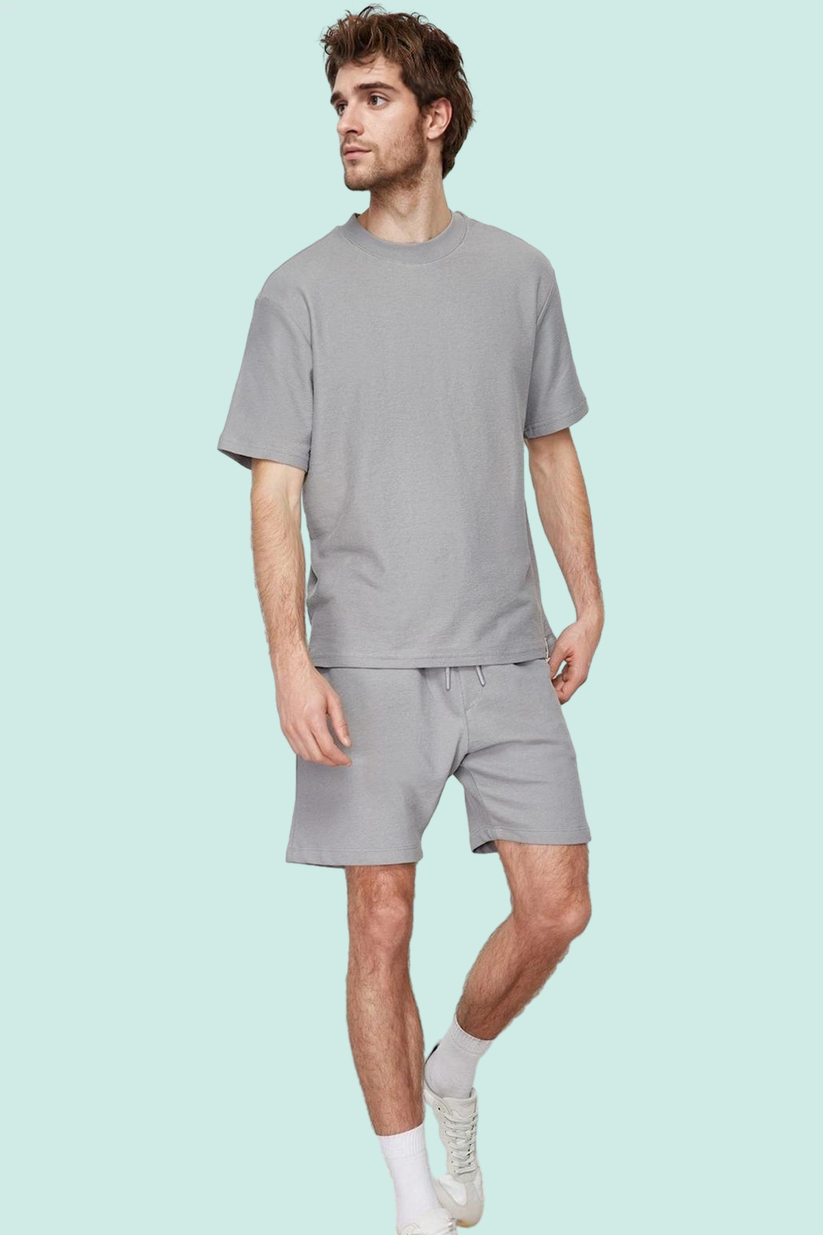 Hem rahatlığı hem de şıklığı arayan modern erkeklere özel tasarlanan bu kısa boy gri şort, yaz aylarının vazgeçilmezi olacak! %100 pamuktan üretilen kumaşı, gün boyu nefes alabilirlik ve konfor sağlar. Dokulu ve örme yapısıyla benzersiz bir görünüm sunarken, geniş paça tasarımı rahat hareket özgürlüğü verir. Normal bel yapısıyla her vücut tipine uyum sağlar. Jogger silueti ile modern bir tarz yakalarken, gri rengi ile her kombininize uyum sağlar. Kemersiz tasarımı pratiklik sunar. Günlük kullanım için ideal olan bu şort, spor aktivitelerinizde de rahatlıkla tercih edilebilir.