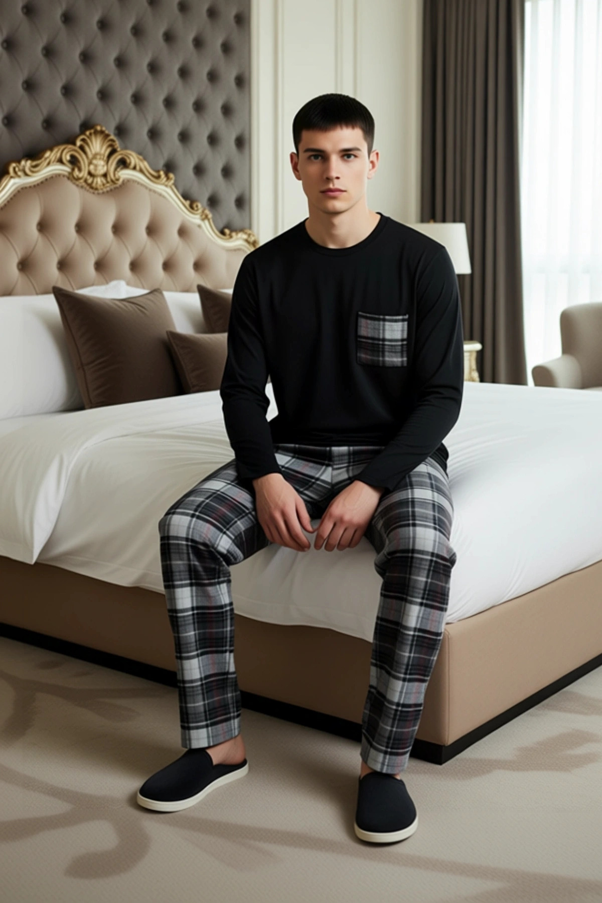 Erkek Kışlık Ekose Desenli Ev Giyim Takımı Fonksiyonel Dayanıklı Kaliteli Konforlu Estetik