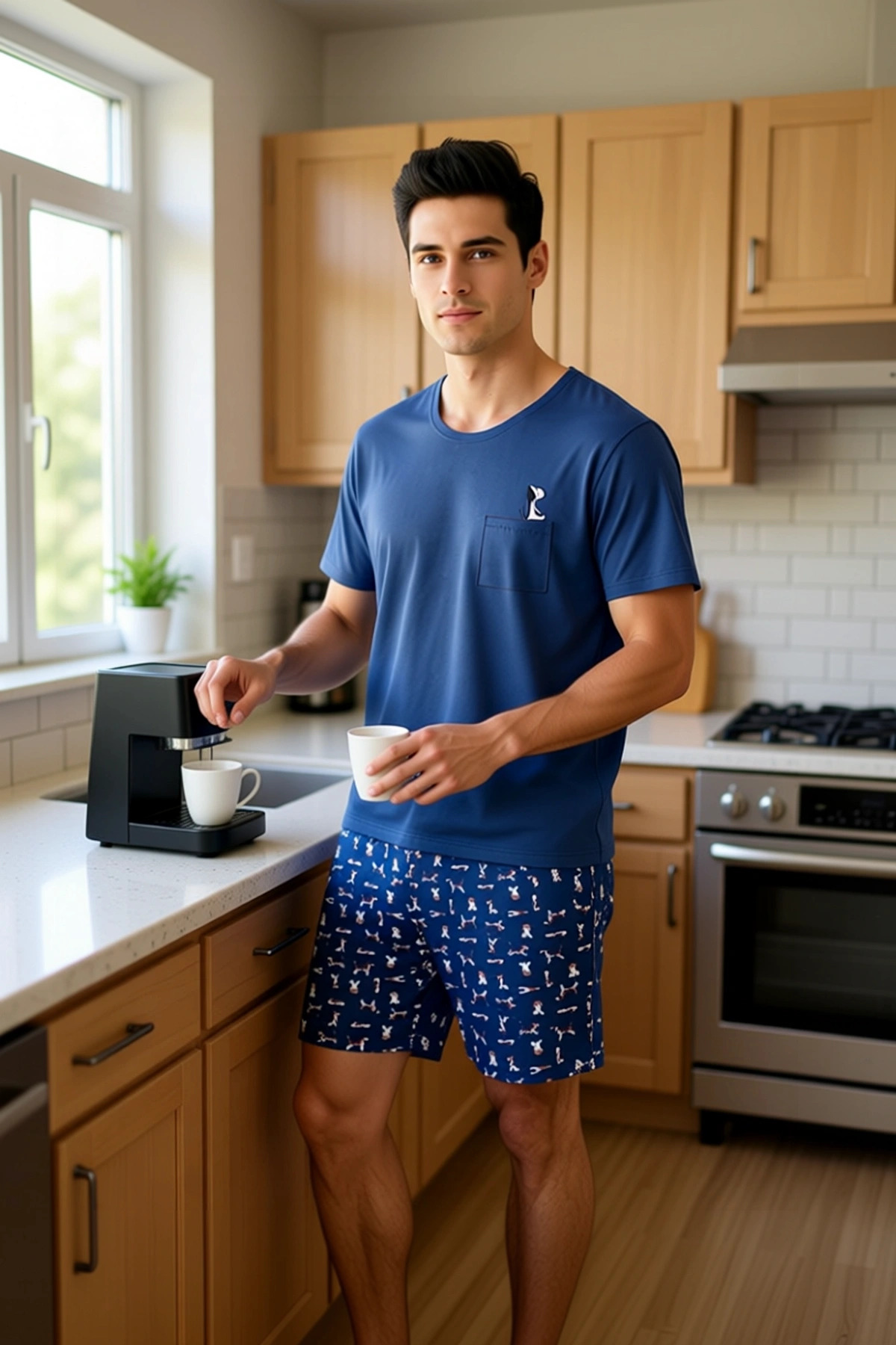 Erkekler için tasarlanmış bu mavi pijama takımı, eğlenceli köpek desenleri ve %100 pamuk kumaşı ile hem rahat hem de stil sahibi bir ev giyim seçeneği sunar. Indigo rengi, klasik ve zamansız bir görünüm sağlarken, şortlardaki sevimli köpek baskıları takıma dinamik bir hava katar. Regular fit kalıbı, hareket özgürlüğünü kısıtlamadan gün boyu süren bir konfor sunar. Bisiklet yaka ve kısa kollu tişört, rahat bir kullanım sağlarken, süprem dokuma kumaşı yumuşaklığı ile cildinizi okşar. Bu pijama takımı, evde geçirdiğiniz her anı daha keyifli hale getirmek için özel olarak üretilmiştir. Casual ve günlük koleksiyonun bir parçası olan bu ürün, cool ve konforlu bir yaşam tarzını benimseyen erkekler için idealdir. Lounge ve ev ortamı için mükemmel bir seçimdir. Takımın tasarımında bisiklet yaka ve standart kesim kısa kollar ön plana çıkar. Regular fit kesimi, vücuda tam oturmayan ama aynı zamanda bol da olmayan bir yapı sunarak hareket kabiliyetini artırır. Şortlar, normal bel ve boru paça kesimiyle gün boyu süren bir rahatlık sağlar. %100 pamuk içeriği, cildin nefes almasına yardımcı olur ve terlemeyi azaltır, böylece gün boyu ferahlık hissi verir. Yumuşak dokusu, ekstra bir konfor katmanı ekler. Bu pijama takımı, özellikle yaz aylarında serin kalmak isteyenler için harika bir seçenektir. Evde dinlenirken veya uyurken maksimum konforu sağlamak üzere tasarlanmıştır. Ürün, hem estetik hem de fonksiyonel açıdan kullanıcıya üst düzey bir deneyim sunar. Bu pijama takımı, özellikle yaz mevsiminde tercih edilebilir. Hafif ve nefes alabilen kumaşı, sıcak havalarda bile konforlu bir kullanım sunar. Bu takımı, rahat bir terlik veya spor ayakkabı ile kombinleyerek ev içinde şık bir görünüm elde edebilirsiniz. Dışarıda daha rahat bir gün geçirmek isterseniz, üzerine basic bir tişört veya sweatshirt giyerek de kullanabilirsiniz. Şortları, yazlık bir gömlek ile birleştirerek daha spor bir tarz yaratabilirsiniz. Takımın bakımı oldukça pratiktir; makinede yıkanabilir ve düşük ısıda ütülenebilir, bu da ona uzun ömürlü bir kullanım kazandırır.
