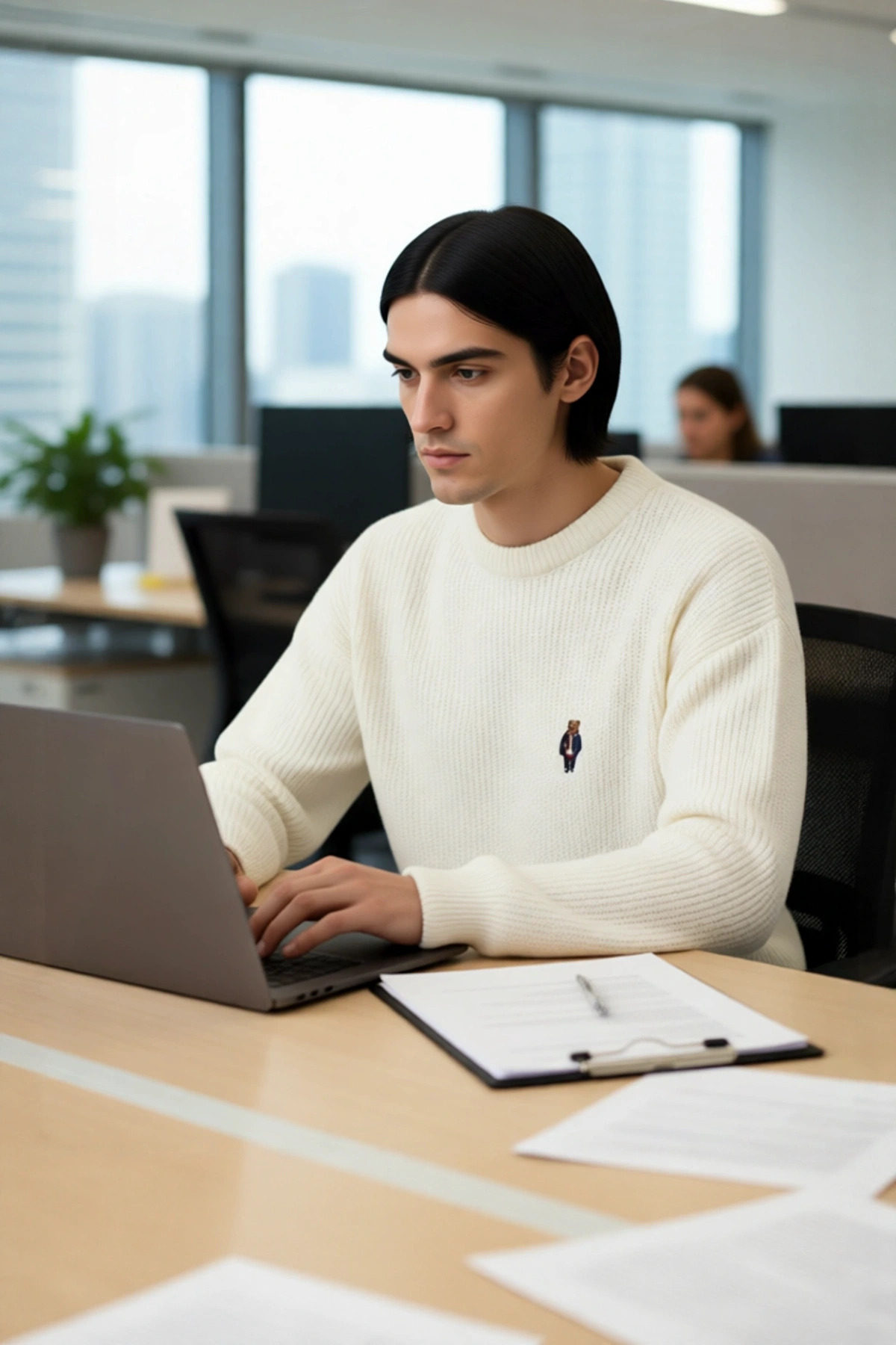 Oversize kalıbı ve geniş kesimi ile bu erkek kazağı, soğuk havalarda bile maksimum konfor ve stil vadediyor. Akrilik ve polyester materyal bileşimi sayesinde hem hafif hem de oldukça sıcak tutan bu parça, yumuşak dokusuyla cildinize dost bir deneyim sunar. Ekru rengi, gardırobunuzdaki diğer parçalarla kolayca bütünleşirken, ön kısmındaki ayı nakışlı deseni kazağa eğlenceli ve dikkat çekici bir karakter kazandırır. Casual ve günlük kullanım için idealdir.