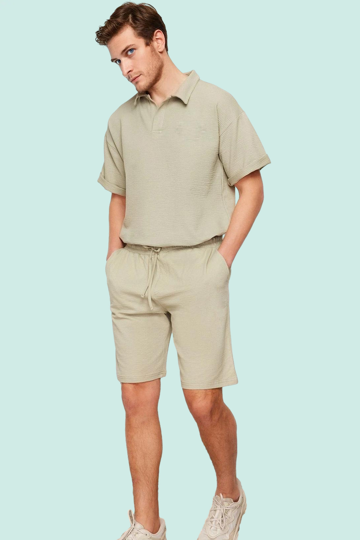 Alternative view of Erkek Yazlık Şort; Nefes Alan Örme Kumaş Boru Paça Rahat Kalıp Günlük Stil Kaliteli Malzeme