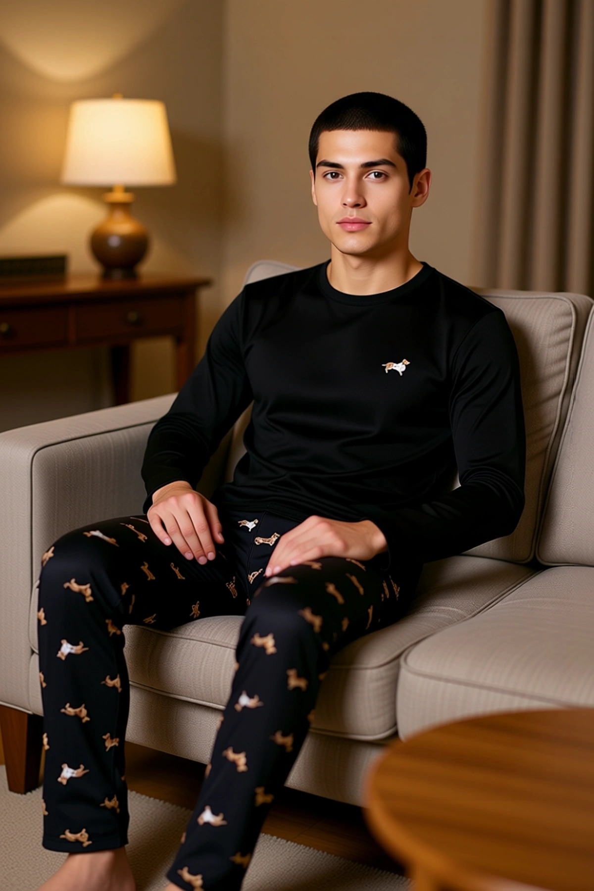 Erkek Slogan Baskılı Uzun Kollu Pijama Takımı Fonksiyonel Dayanıklı Kaliteli Konforlu Spor