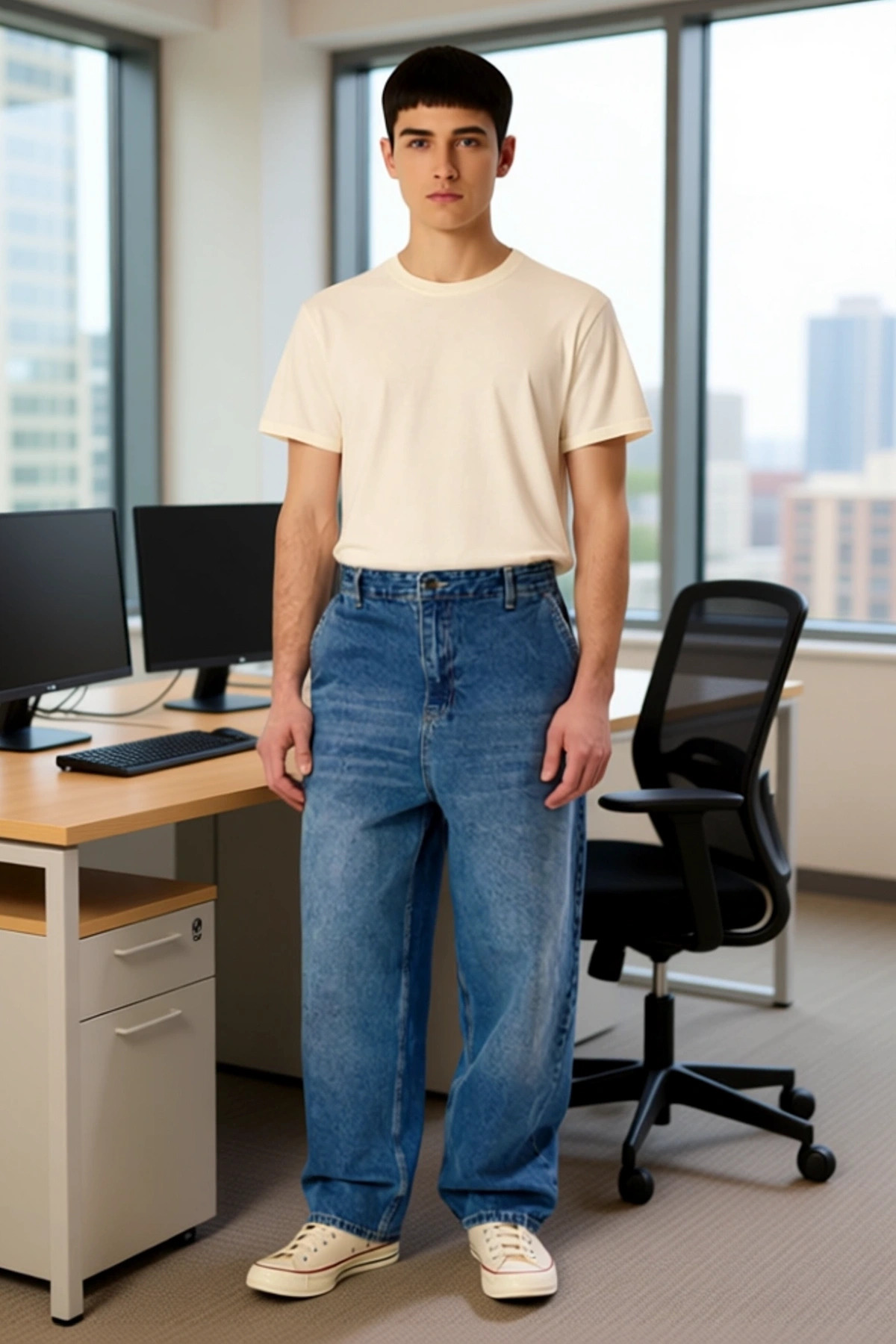 Orta mavi rengi ve rahat kesimiyle bu erkek kot pantolon, günlük stilinize modern bir dokunuş katacak. %100 pamuk içeriğiyle üretilmiş olup, cildinize dost ve nefes alabilen bir yapı sunar. Düz deseni ve klasik denim dokusu, zamansız bir şıklık vadeder. Baggy fit kalıbı, hareket özgürlüğünüzü kısıtlamadan rahat bir kullanım sağlar. Fermuarlı kapama ve normal bel detayı, pantolonun fonksiyonelliğini artırır. Bu pantolon, casual giyim tarzını benimseyenler için mükemmel bir tercihtir. Pantolonun skater silüeti, modern ve dinamik bir görünüm sunar. Normal bel yüksekliği, rahat bir oturuş sağlarken, boru paça kesimi pantolona çağdaş bir hava katar. Denim kumaşın dayanıklılığı, bu pantolonu uzun yıllar gardırobunuzda tutmanızı sağlar. Konfor ve stilin bir araya geldiği bu parça, her erkeğin dolabında bulunması gereken temel bir giysidir. Günlük yaşamın temposuna ayak uyduracak şekilde tasarlanmış bu kot pantolon, stil sahibi erkekler için idealdir. Bu pantolon, özellikle bahar ve yaz aylarında rahatlıkla tercih edilebilir. Beyaz bir tişört ve spor ayakkabılarla kombinleyerek spor bir görünüm elde edebilirsiniz. Daha klasik bir stil için keten bir gömlek ve mokasenlerle de uyum sağlayacaktır. Makinede yıkanabilir olması, pratik bir kullanım sunar. Bu pantolon, stilinizi ön plana çıkarırken konforunuzu da en üst düzeyde tutacaktır.