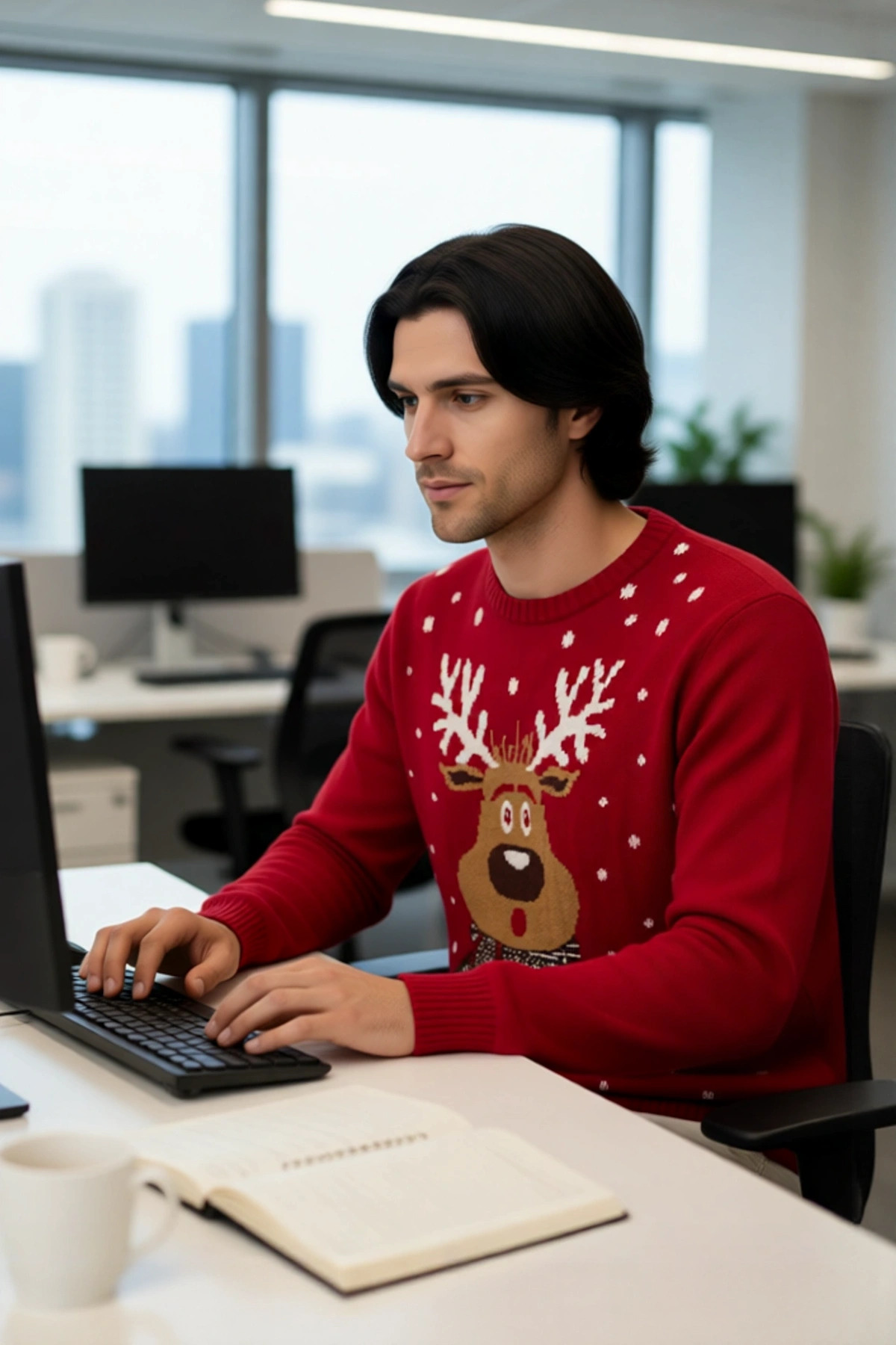 Erkekler için tasarlanan bu kazak, regular kesimiyle farklı beden tiplerine uyum sağlar ve günlük giyimde rahatlığı ön planda tutar. Casual ve günlük ortamlar için mükemmel bir seçenek olan bu parça, jean pantolonlar veya spor kesim pantolonlarla tamamlanabilir. Kış sezonunda arkadaş buluşmalarında, aile yemeklerinde veya yılbaşı kutlamalarında şıklığınızı ve neşenizi ön plana çıkarır, soğuk havada sizi sıcacık tutar.