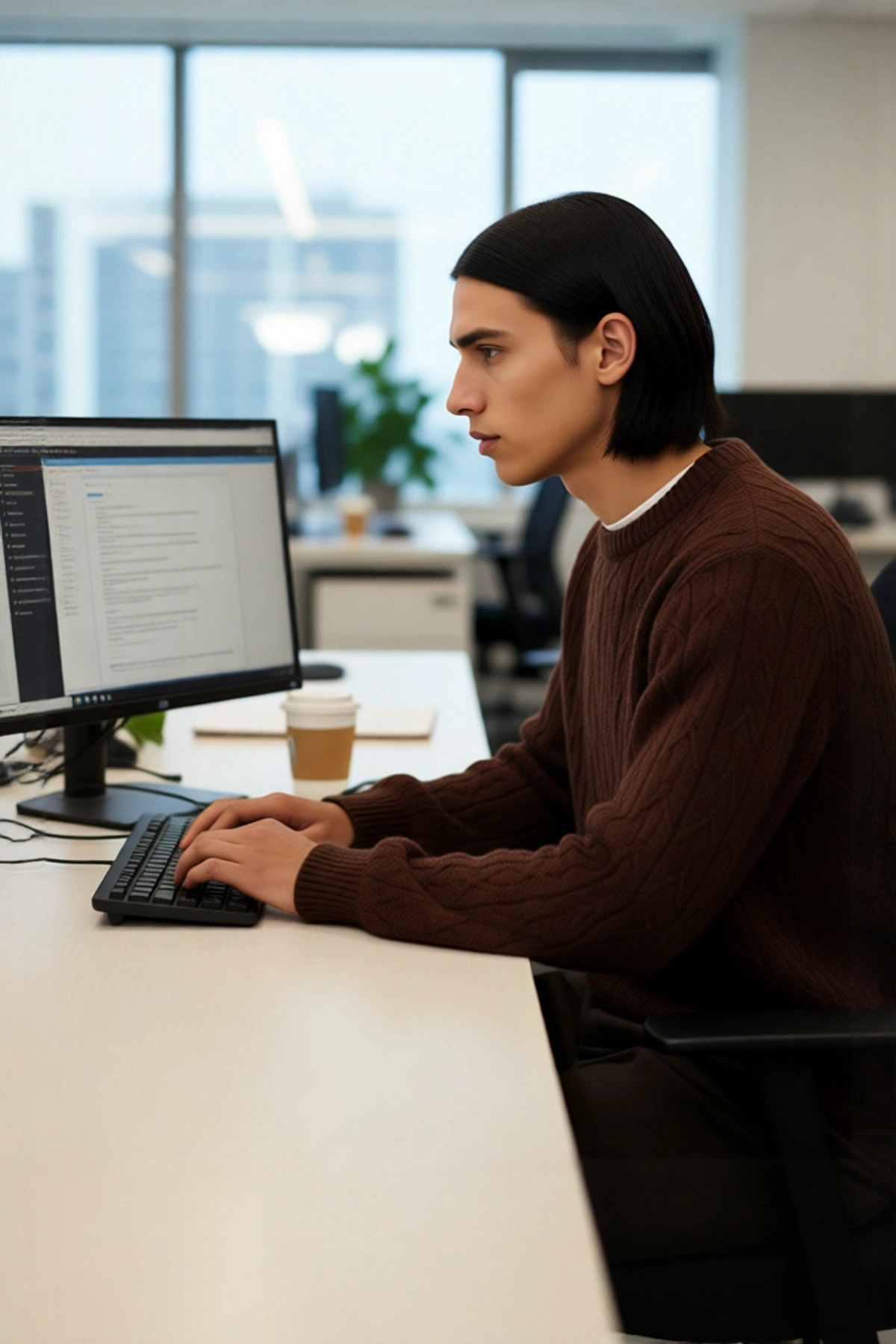 Bu kahverengi erkek kazak, regular kalıbı ile vücudu sıkmayan rahat bir kesim sunarak gün boyu konfor sağlar. %60 akrilik ve %40 polyesterden oluşan materyal bileşimi, soğuk kış günlerinde sizi sıcak tutarken aynı zamanda hafif ve nefes alabilir bir yapıya sahiptir. Dokulu deseni, kazağa derinlik ve modern bir estetik katarken, kahverengi tonu zamansız bir şıklık ve kolay kombinlenebilirlik sunar. Düz ürün tipi ve cepsiz tasarımı, minimalist bir görünüm arayanlar için idealdir.
