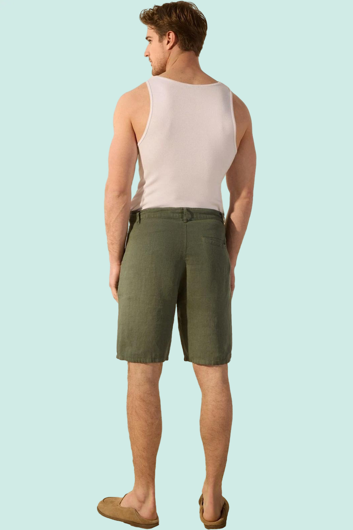 %100 keten kumaşın nefes alan yapısı, sıcak havalarda bile sizi serin ve rahat hissetmenizi sağlar. Düz deseni ve haki rengi, her türlü üst giyimle kolayca kombinlenebilmesini sağlıyor. Kaliteli kumaşı sayesinde uzun yıllar kullanabileceğiniz bu şort, dayanıklılığı ve şıklığıyla dikkat çekiyor. Normal bel yüksekliği ve rahat kalıbıyla tüm gün konfor sunuyor. Makinede yıkanabilir olması da pratik kullanım sağlıyor.