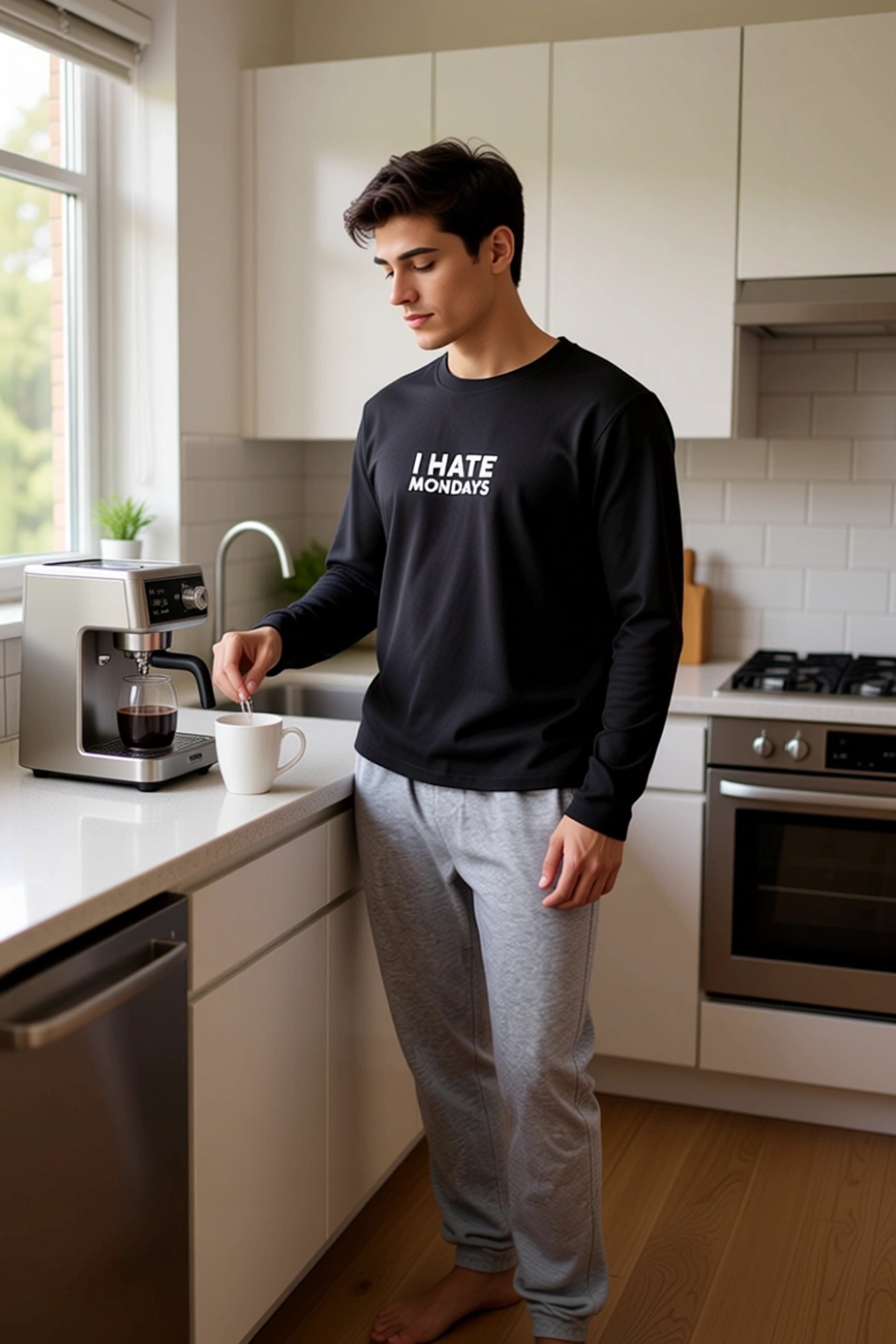 Erkek Slogan Baskılı Regular Fit Uzun Kollu Pijama Takımı Fonksiyonel Dayanıklı Kaliteli Şık