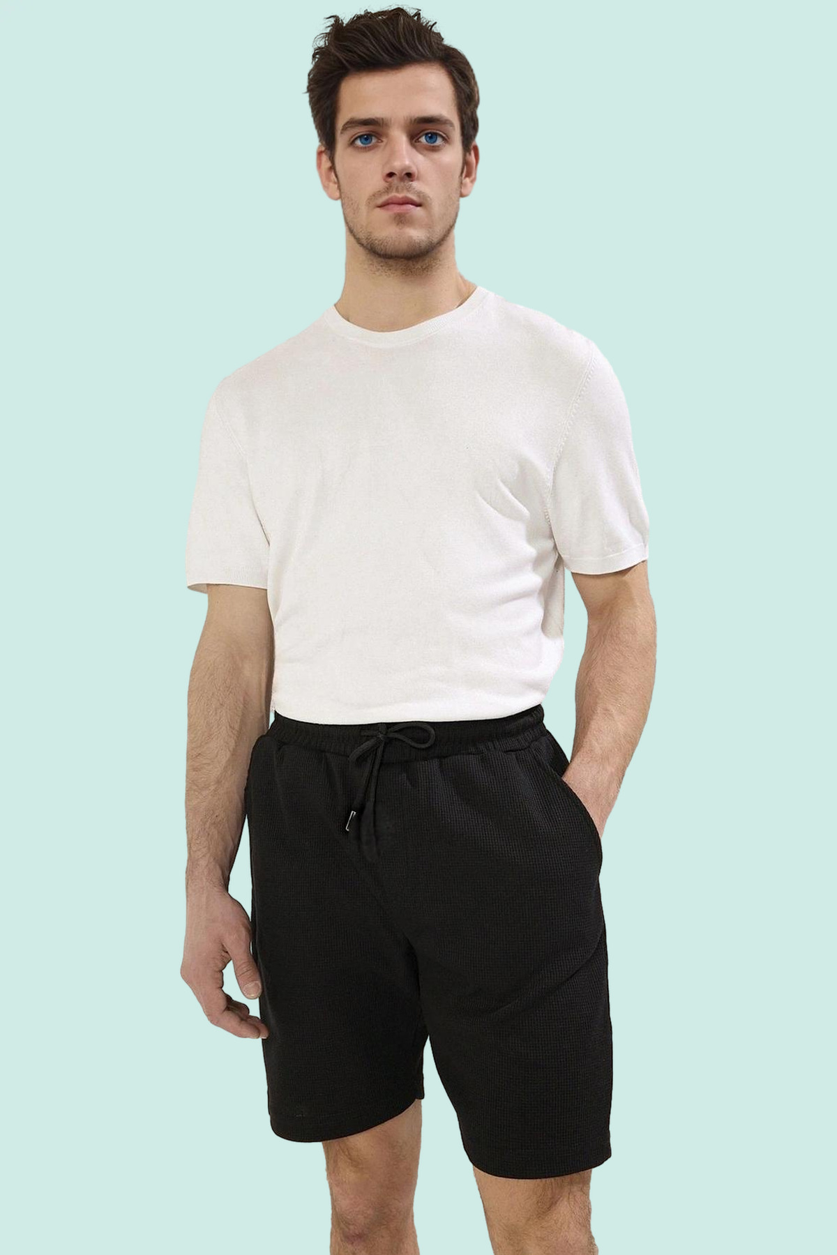Bu şortun en önemli özelliklerinden biri, yüksek kaliteli interlok dokuma kumaşı. Bu kumaş türü, nefes alabilirliği ve yumuşak dokusuyla öne çıkıyor. Yazın sıcak günlerinde bile serin ve rahat kalmanıza yardımcı olurken, aynı zamanda dayanıklı yapısıyla uzun süreli kullanım imkanı sunuyor. Kısa boyu sayesinde hareket özgürlüğünüzü kısıtlamaz ve gün boyu rahat hareket etmenizi sağlar. Dikiş detayları, şorta şık ve modern bir hava katıyor.