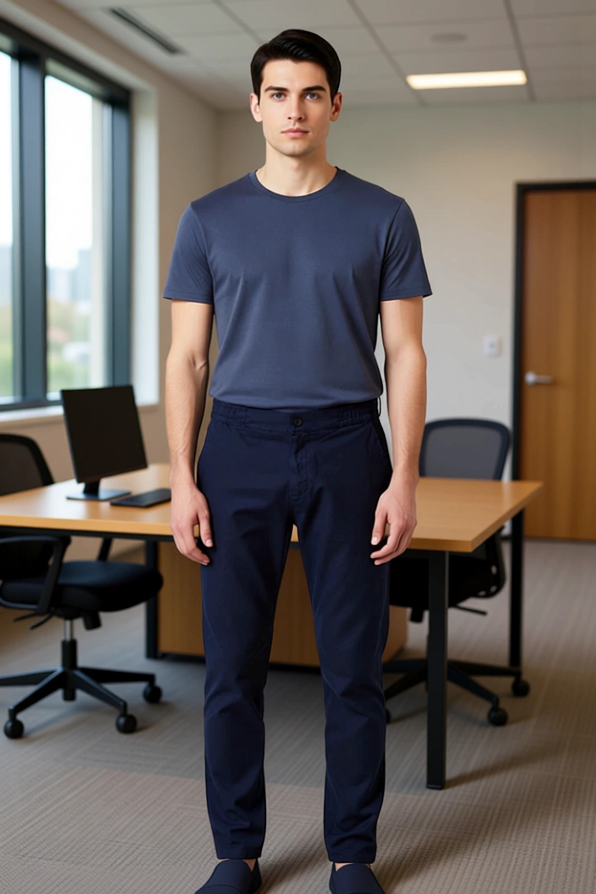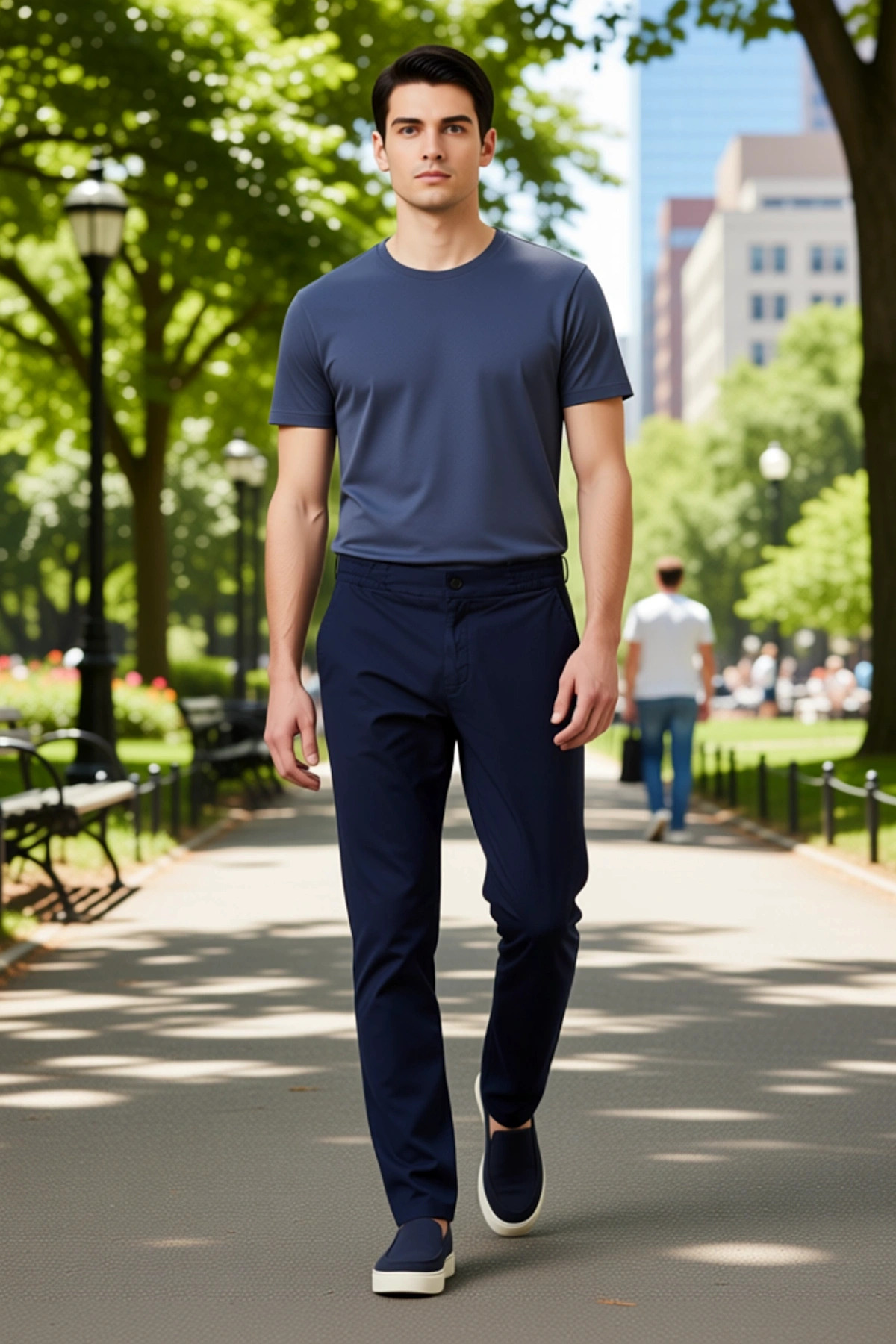 Bu pantolon, erkeklerin günlük şıklığını ve konforunu bir araya getiren özel bir tasarımdır. %100 pamuk materyali, cildinize nazik davranırken, özel dokusu pantolona sofistike bir hava katar. Straight kalıp ve boru paça kesimi, modern bir görünüm sunarken, regular boyu her vücut tipine uyum sağlar. Lacivert rengi, her kıyafetle kolayca uyum sağlayabilen zamansız bir seçenektir. Dokuma kumaşın kalitesi, uzun ömürlü kullanım ve nefes alabilirlik vaat eder. Bu pantolon, smart persona ile uyumlu olup, hem casual hem de daha şık ortamlarda rahatlıkla tercih edilebilir. Dokulu deseni, sıradan pantolonlardan ayrışarak stilinize özgün bir dokunuş ekler. Bu ürün, kalitesi ve estetik görünümüyle gardırobunuzun favori parçalarından biri olacaktır. Pantolonun öne çıkan özellikleri arasında normal bel yüksekliği ve straight kesimi yer alır. Bu kesim, vücuda oturan ancak sıkmayan bir yapı sunarak hareket özgürlüğünü maksimize eder. Boru paça detayı, klasik ve zarif bir görünüm sağlarken, %100 pamuk içeriği sayesinde gün boyu süren bir konfor sunar. Dokulu kumaş, pantolona ekstra bir doku ve derinlik katarak görsel olarak ilgi çekici hale getirir. Nefes alabilen yapısı, özellikle sıcak havalarda tercih edilmesini kolaylaştırır. Casual ve günlük kullanım için ideal olan bu pantolon, smart bir duruş sergilemek isteyen erkekler için de biçilmiş kaftandır. Şıklığı ve rahatlığı bir arada sunan bu ürün, her erkeğin dolabında bulunması gereken bir parçadır. Yaz aylarında rahat ve şık bir görünüm için bu pantolonu keten gömlekler, polo tişörtler veya çizgili t-shirtlerle kombinleyebilirsiniz. Ayakkabı olarak ise beyaz spor ayakkabılar, kanvas ayakkabılar veya mokasenler tercih edilebilir. Daha şık bir görünüm için ise ince triko kazaklar ve loaferlar ile tamamlayabilirsiniz. Bu pantolonun bakımı oldukça basittir; soğuk su ile makinede yıkanabilir ve düşük ısıda ütülenebilir, böylece uzun ömürlü kullanım sağlar.