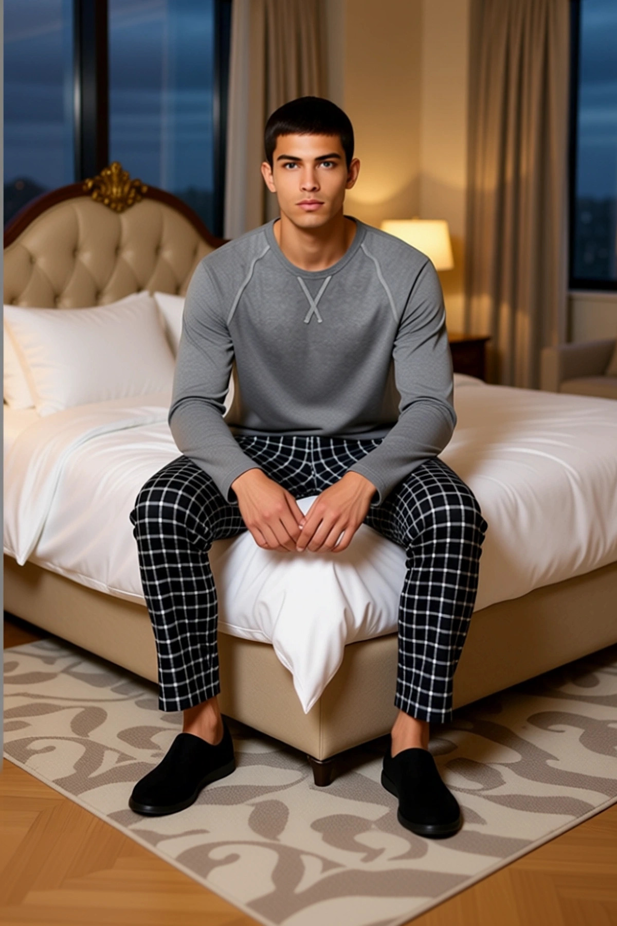Erkek V Yaka Ekose Desenli Pijama Takımı Fonksiyonel Dayanıklı Kaliteli Konforlu Estetik Şık