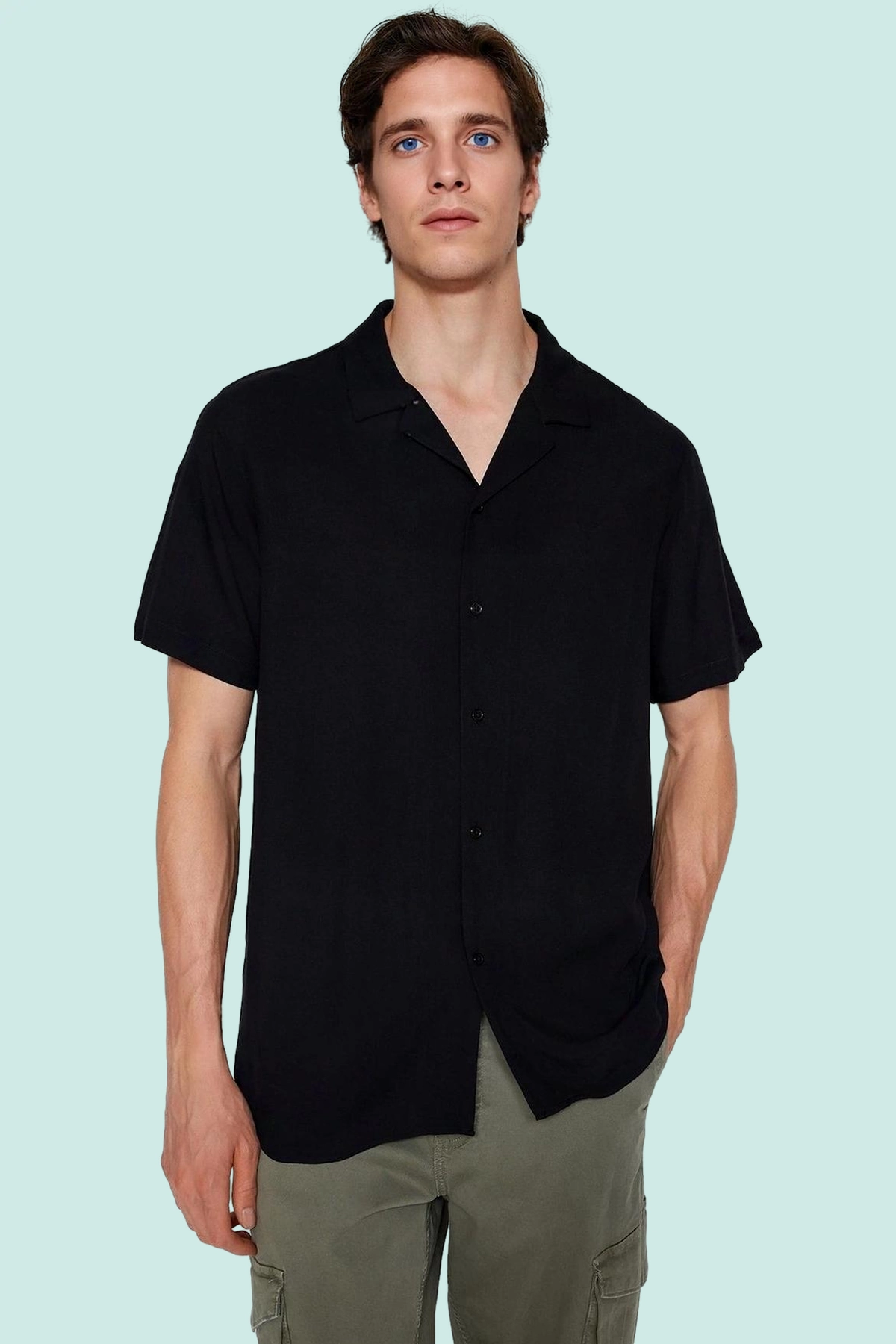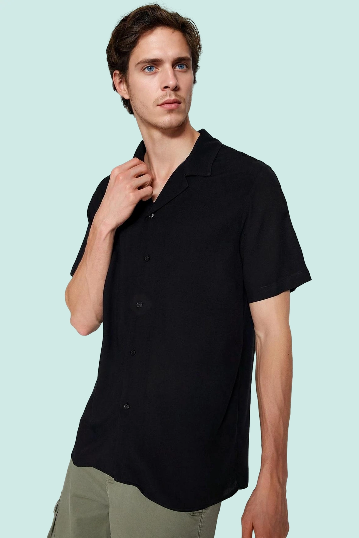 Rahatlığı ve şıklığı bir arada arayan modern erkekler için tasarlanan bu siyah gömlek, yaz aylarının en gözde parçası olmaya aday. %100 viskoz dokuma kumaştan üretilen gömlek, yumuşak dokusu ve nefes alabilir özelliği ile gün boyu konfor sunar. Basic silueti ve apaş yakası ile hem spor hem de şık kombinler için ideal bir seçenektir. Kısa kolları sayesinde sıcak havalarda serin kalmanıza yardımcı olurken, regular fit kalıbıyla vücudunuza mükemmel uyum sağlar. Günlük yaşamınızda ve rahatlamak istediğiniz her an yanınızda olacak bu gömlek, tarzınıza modern bir dokunuş katacaktır.